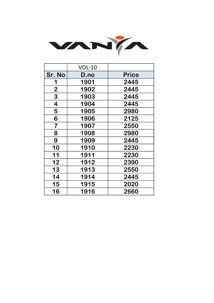 Buy Online Vanya Vol 10 Series 1901 To 1916 Designer Party Wear Sarees Wholesale Supplier Gujarat 16 Pcs of Full Catalogue at Wholesale Price. Looking for Vanya Vol 10 Series 1901 To 1916 Designer Party Wear Sarees Wholesale Supplier Gujarat Full Catalouge at Best Price? Buy Now Vanya Vol 10 Series 1901 To 1916 Designer Party Wear Sarees Wholesale Supplier Gujarat at Wholesale Rate of Rs 0 with Total 16 Pcs from authroized dealer and supplier of VANYA Brand. Cost of Each piece is just only Rs 0 which is very low and affordable price to resale the product in your retail store ,This is Surat based Wholesale Supplier & Dealer of VANYA Brand. Click on Brand name to Know more about VANYA Brand's products.Call or Whatsapp on 9898838984 for booking or enquiry