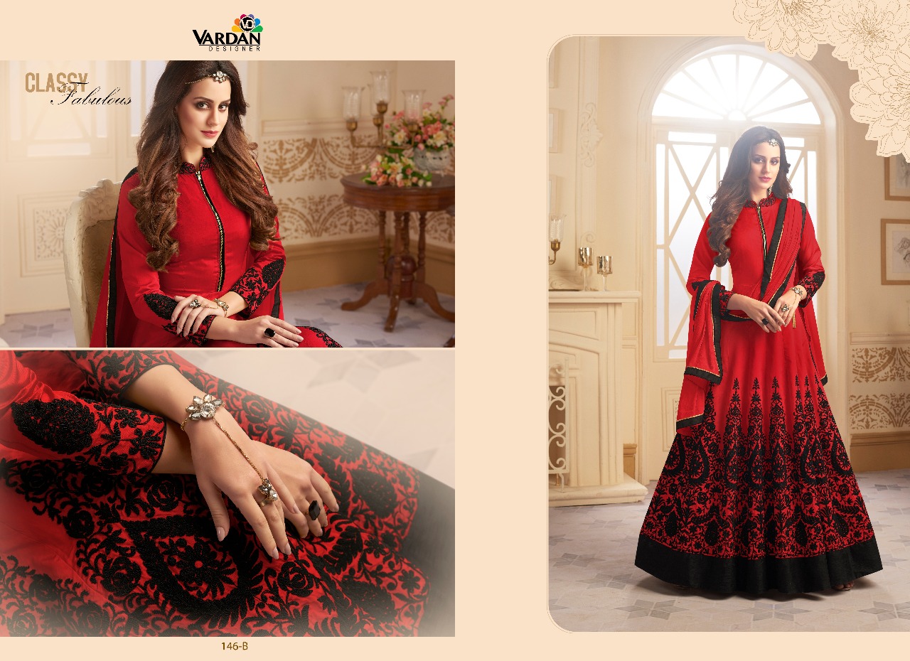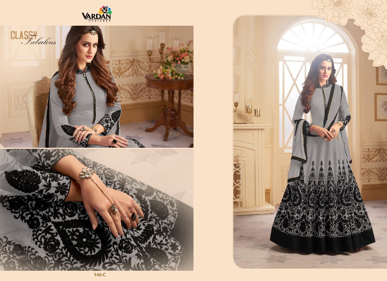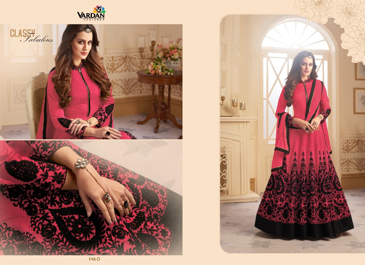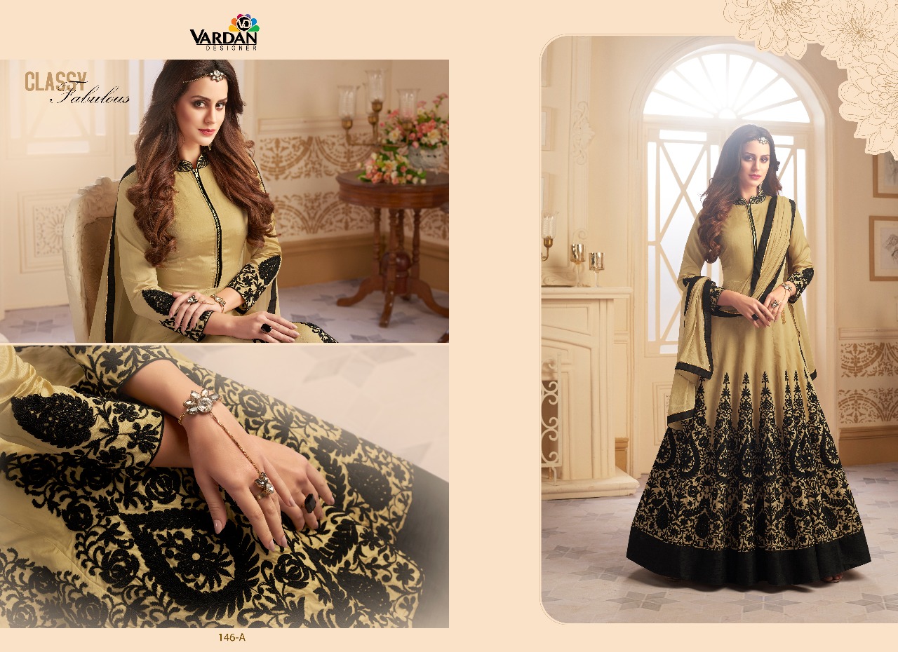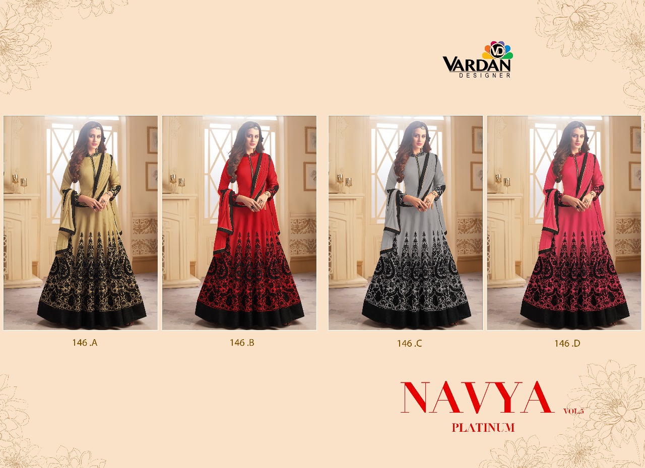 Buy Online Vardan Designer Navya Vol 5 Platinum 146 Colours Gown Suit 4 Pcs of Full Catalogue at Wholesale Price. Looking for Vardan Designer Navya Vol 5 Platinum 146 Colours Gown Suit Full Catalouge at Best Price? Buy Now Vardan Designer Navya Vol 5 Platinum 146 Colours Gown Suit at Wholesale Rate of Rs 4380 with Total 4 Pcs from authroized dealer and supplier of VARDAN DESIGNER Brand. Cost of Each piece is just only Rs 1095 which is very low and affordable price to resale the product in your retail store ,This is Surat based Wholesale Supplier & Dealer of VARDAN DESIGNER Brand. Click on Brand name to Know more about VARDAN DESIGNER Brand's products.Call or Whatsapp on 9898838984 for booking or enquiry