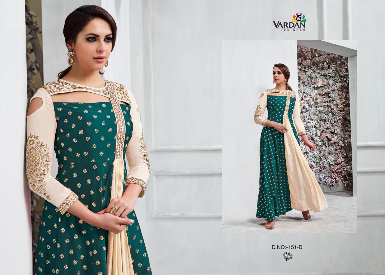 Buy Online Vardan Designer Navya Vol 6 Gold 151 Colours Designer Gown Suit Catlog Wholesale Dealer Surat 5 Pcs of Full Catalogue at Wholesale Price. Looking for Vardan Designer Navya Vol 6 Gold 151 Colours Designer Gown Suit Catlog Wholesale Dealer Surat Full Catalouge at Best Price? Buy Now Vardan Designer Navya Vol 6 Gold 151 Colours Designer Gown Suit Catlog Wholesale Dealer Surat at Wholesale Rate of Rs 6125 with Total 5 Pcs from authroized dealer and supplier of VARDAN DESIGNER Brand. Cost of Each piece is just only Rs 1225 which is very low and affordable price to resale the product in your retail store ,This is Surat based Wholesale Supplier & Dealer of VARDAN DESIGNER Brand. Click on Brand name to Know more about VARDAN DESIGNER Brand's products.Call or Whatsapp on 9898838984 for booking or enquiry