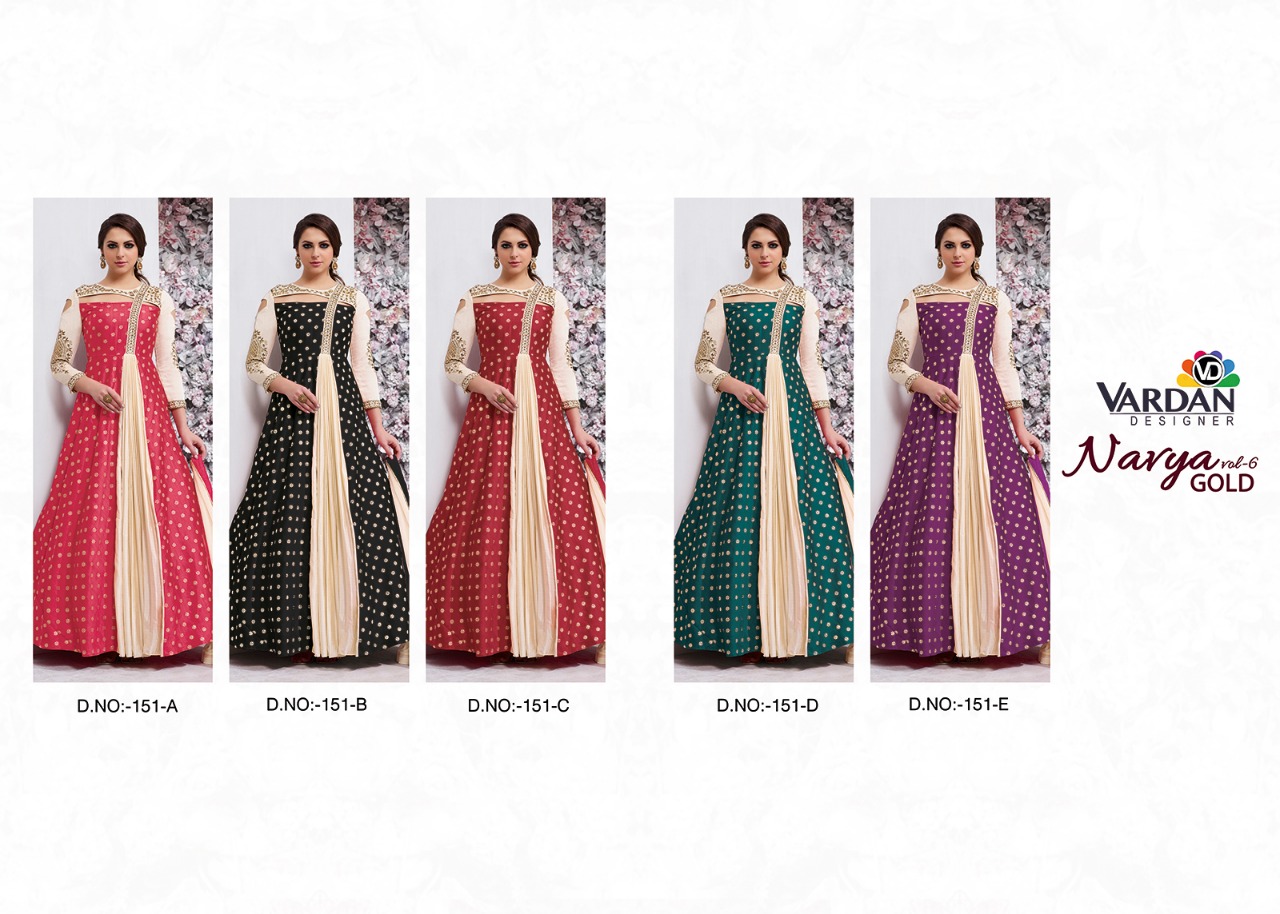 Vardan Designer Navya Vol 6 Gold 151 Colours Designer Gown Suit Catlog Wholesale Dealer Surat