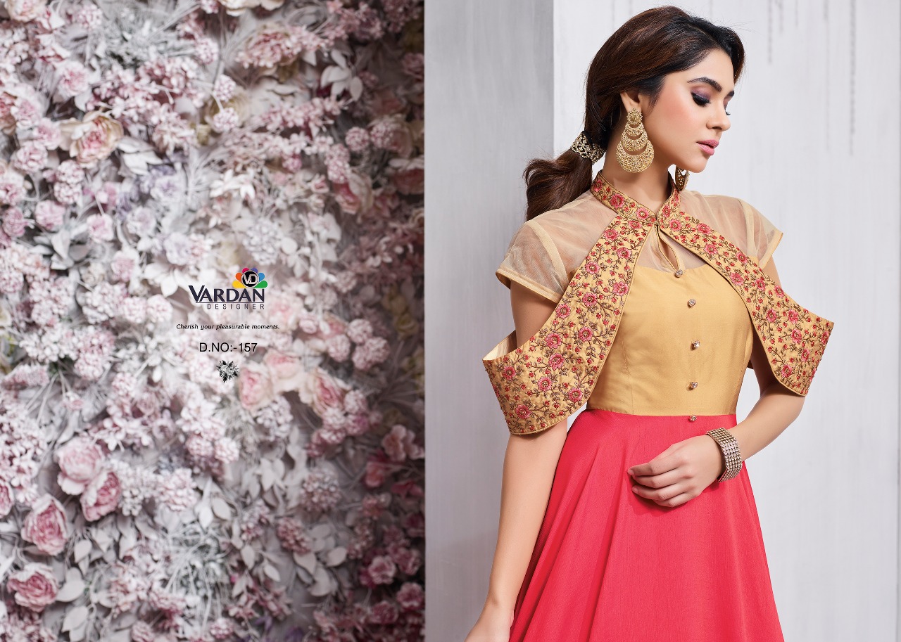 Buy Online Vardan Navya Vol 6 151 To 158 Series Designer Gowns Dealer 8 Pcs of Full Catalogue at Wholesale Price. Looking for Vardan Navya Vol 6 151 To 158 Series Designer Gowns Dealer Full Catalouge at Best Price? Buy Now Vardan Navya Vol 6 151 To 158 Series Designer Gowns Dealer at Wholesale Rate of Rs 9592 with Total 8 Pcs from authroized dealer and supplier of VARDAN DESIGNER Brand. Cost of Each piece is just only Rs 1199 which is very low and affordable price to resale the product in your retail store ,This is Surat based Wholesale Supplier & Dealer of VARDAN DESIGNER Brand. Click on Brand name to Know more about VARDAN DESIGNER Brand's products.Call or Whatsapp on 9898838984 for booking or enquiry