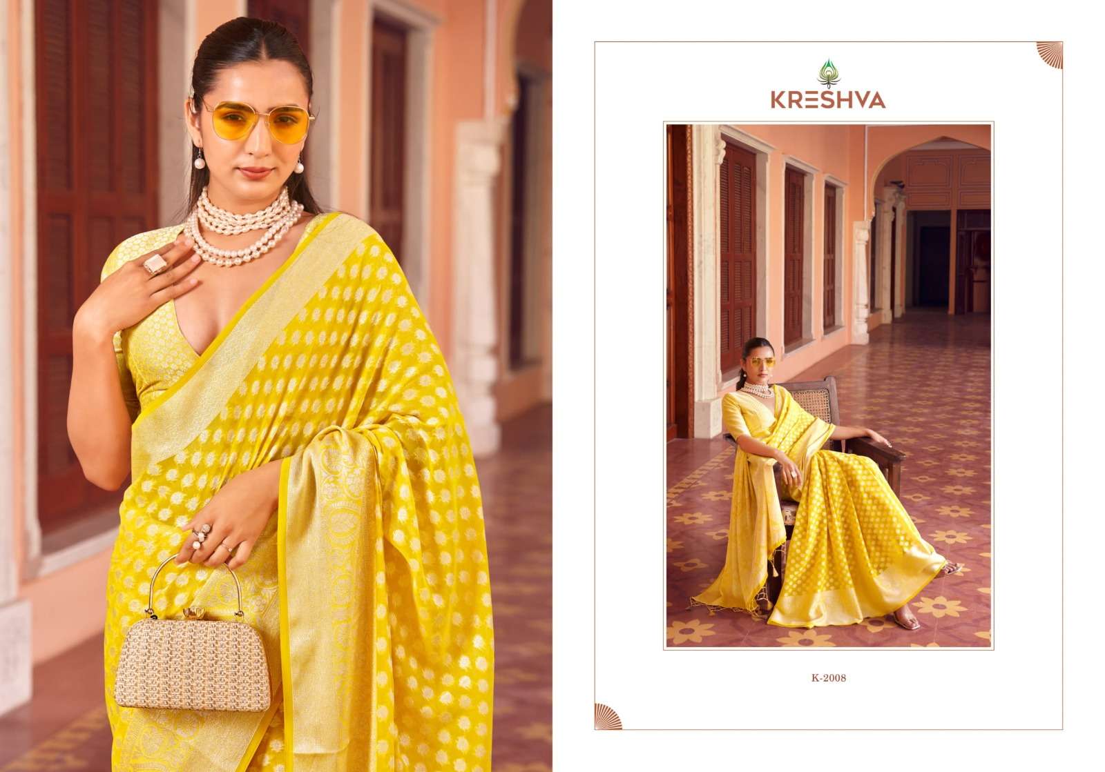 Buy Online Varima Series 2007 TO 2012 By Kreshva Georgette saree collection manufacturer surat 6 Pcs of Full Catalogue at Wholesale Price. Looking for Varima Series 2007 TO 2012 By Kreshva Georgette saree collection manufacturer surat Full Catalouge at Best Price? Buy Now Varima Series 2007 TO 2012 By Kreshva Georgette saree collection manufacturer surat at Wholesale Rate of Rs 7770 with Total 6 Pcs from authroized dealer and supplier of KRESHVA Brand. Cost of Each piece is just only Rs 1295 which is very low and affordable price to resale the product in your retail store ,This is Surat based Wholesale Supplier & Dealer of KRESHVA Brand. Click on Brand name to Know more about KRESHVA Brand's products.Call or Whatsapp on 9898838984 for booking or enquiry