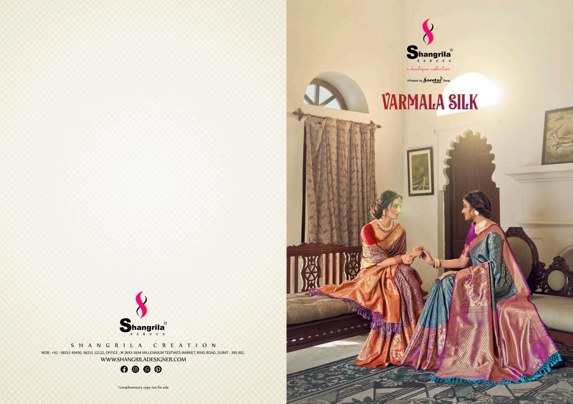 Buy Online Varmala Silk By Shangrila Sarees Wholesaler Supplier From Surat 6 Pcs of Full Catalogue at Wholesale Price. Looking for Varmala Silk By Shangrila Sarees Wholesaler Supplier From Surat Full Catalouge at Best Price? Buy Now Varmala Silk By Shangrila Sarees Wholesaler Supplier From Surat at Wholesale Rate of Rs 6900 with Total 6 Pcs from authroized dealer and supplier of SHANGRILA Brand. Cost of Each piece is just only Rs 1150 which is very low and affordable price to resale the product in your retail store ,This is Surat based Wholesale Supplier & Dealer of SHANGRILA Brand. Click on Brand name to Know more about SHANGRILA Brand's products.Call or Whatsapp on 9898838984 for booking or enquiry