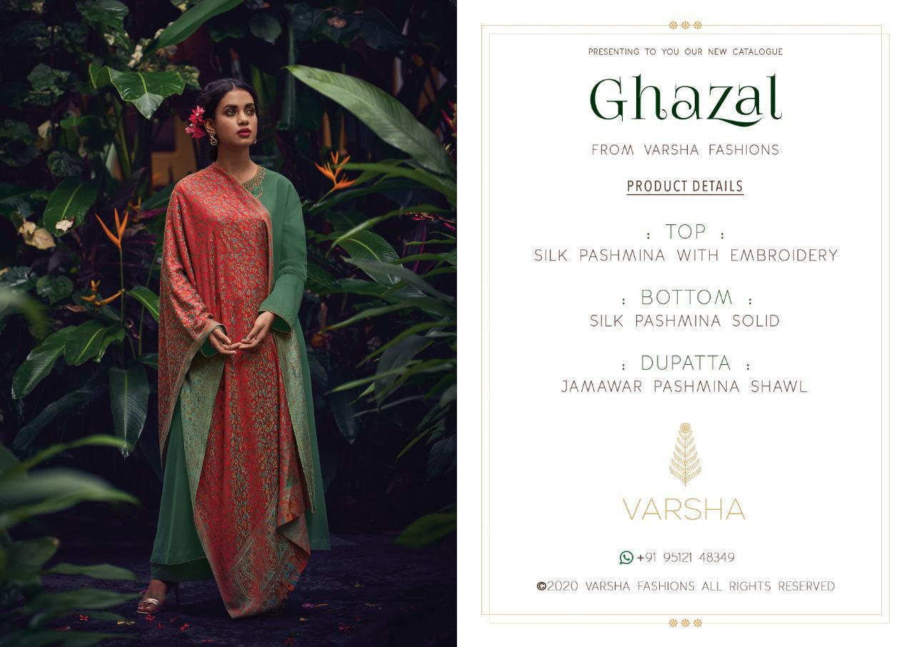 Buy Online Varsha Ghazal Pashmina Suits Supplier 8 Pcs of Full Catalogue at Wholesale Price. Looking for Varsha Ghazal Pashmina Suits Supplier Full Catalouge at Best Price? Buy Now Varsha Ghazal Pashmina Suits Supplier at Wholesale Rate of Rs 15840 with Total 8 Pcs from authroized dealer and supplier of BRAND'S Brand. Cost of Each piece is just only Rs 1980 which is very low and affordable price to resale the product in your retail store ,This is Surat based Wholesale Supplier & Dealer of BRAND'S Brand. Click on Brand name to Know more about BRAND'S Brand's products.Call or Whatsapp on 9898838984 for booking or enquiry