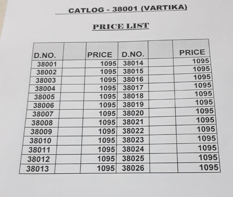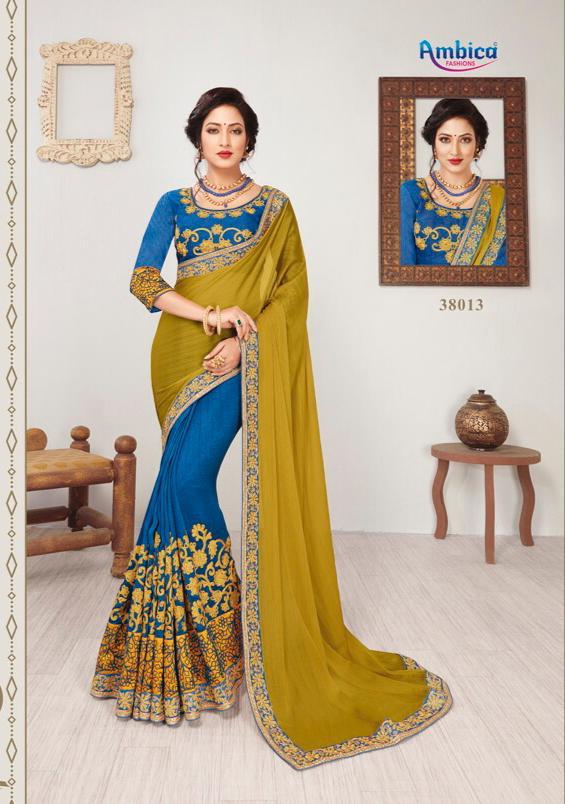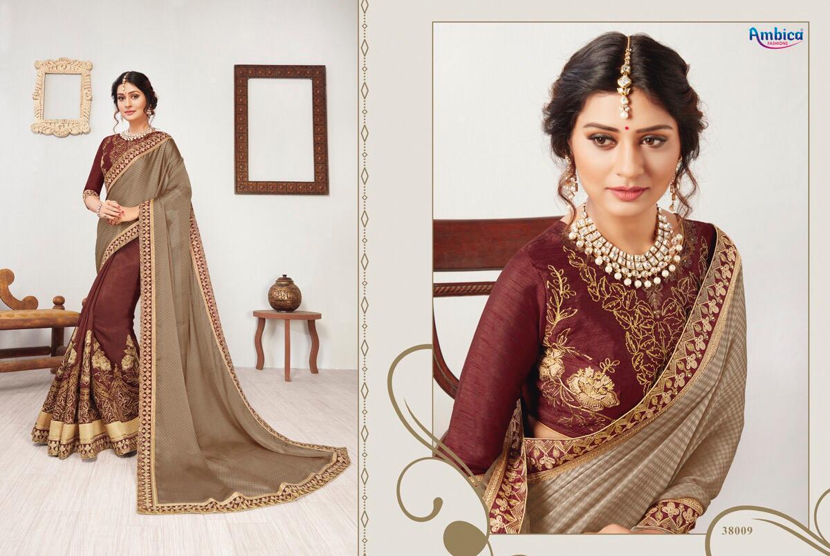 Buy Online Vartika By Ambica 38001 Series Designer Party Wear Saree Collection Wholesale Supplier And Trader 26 Pcs of Full Catalogue at Wholesale Price. Looking for Vartika By Ambica 38001 Series Designer Party Wear Saree Collection Wholesale Supplier And Trader Full Catalouge at Best Price? Buy Now Vartika By Ambica 38001 Series Designer Party Wear Saree Collection Wholesale Supplier And Trader at Wholesale Rate of Rs 28470 with Total 26 Pcs from authroized dealer and supplier of AMBICA Brand. Cost of Each piece is just only Rs 1095 which is very low and affordable price to resale the product in your retail store ,This is Surat based Wholesale Supplier & Dealer of AMBICA Brand. Click on Brand name to Know more about AMBICA Brand's products.Call or Whatsapp on 9898838984 for booking or enquiry