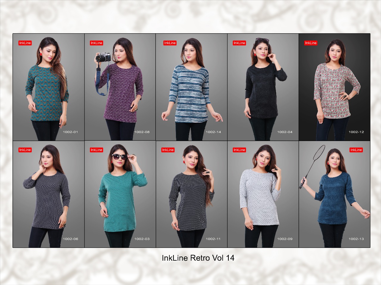 Buy Online Varun Inkline Retro Vol 14 Fancy Printed Votton Lycra Kurti 10 Pcs of Full Catalogue at Wholesale Price. Looking for Varun Inkline Retro Vol 14 Fancy Printed Votton Lycra Kurti Full Catalouge at Best Price? Buy Now Varun Inkline Retro Vol 14 Fancy Printed Votton Lycra Kurti at Wholesale Rate of Rs 1800 with Total 10 Pcs from authroized dealer and supplier of VARUN Brand. Cost of Each piece is just only Rs 180 which is very low and affordable price to resale the product in your retail store ,This is Surat based Wholesale Supplier & Dealer of VARUN Brand. Click on Brand name to Know more about VARUN Brand's products.Call or Whatsapp on 9898838984 for booking or enquiry