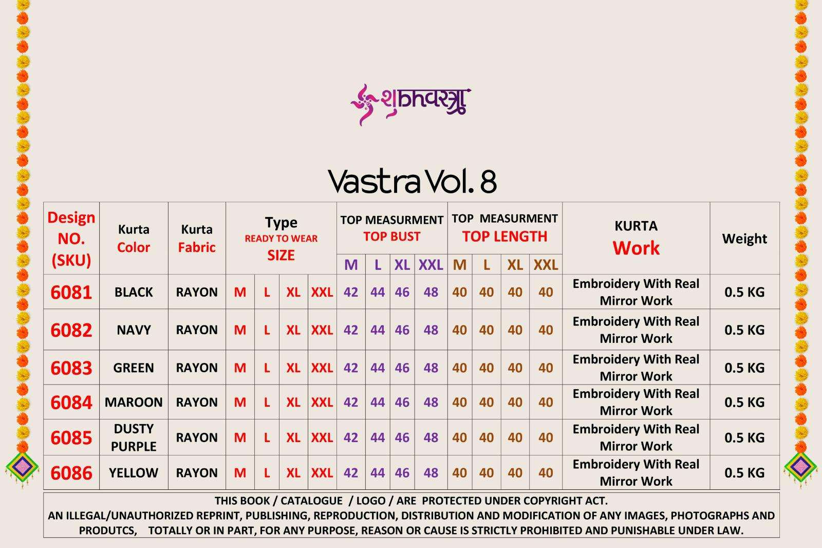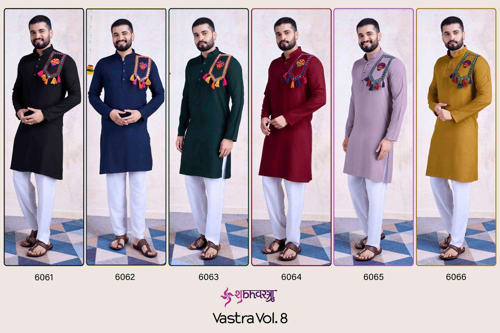 Buy Online VASTRA VOL 8 by SHUBHVASTRA Festival Wear Kurta Collection manufacturer surat 6 Pcs of Full Catalogue at Wholesale Price. Looking for VASTRA VOL 8 by SHUBHVASTRA Festival Wear Kurta Collection manufacturer surat Full Catalouge at Best Price? Buy Now VASTRA VOL 8 by SHUBHVASTRA Festival Wear Kurta Collection manufacturer surat at Wholesale Rate of Rs 3300 with Total 6 Pcs from authroized dealer and supplier of BRAND'S Brand. Cost of Each piece is just only Rs 550 which is very low and affordable price to resale the product in your retail store ,This is Surat based Wholesale Supplier & Dealer of BRAND'S Brand. Click on Brand name to Know more about BRAND'S Brand's products.Call or Whatsapp on 9898838984 for booking or enquiry