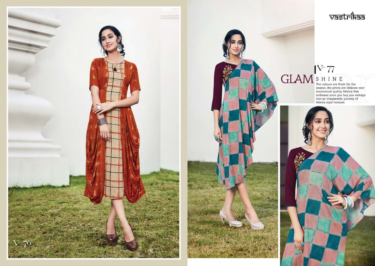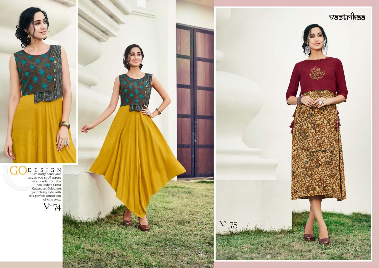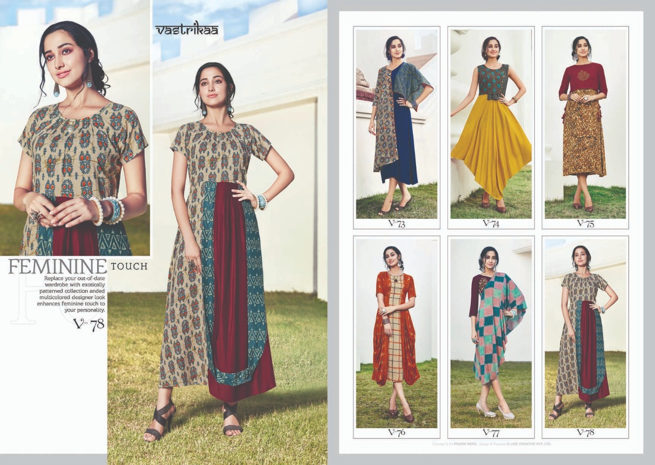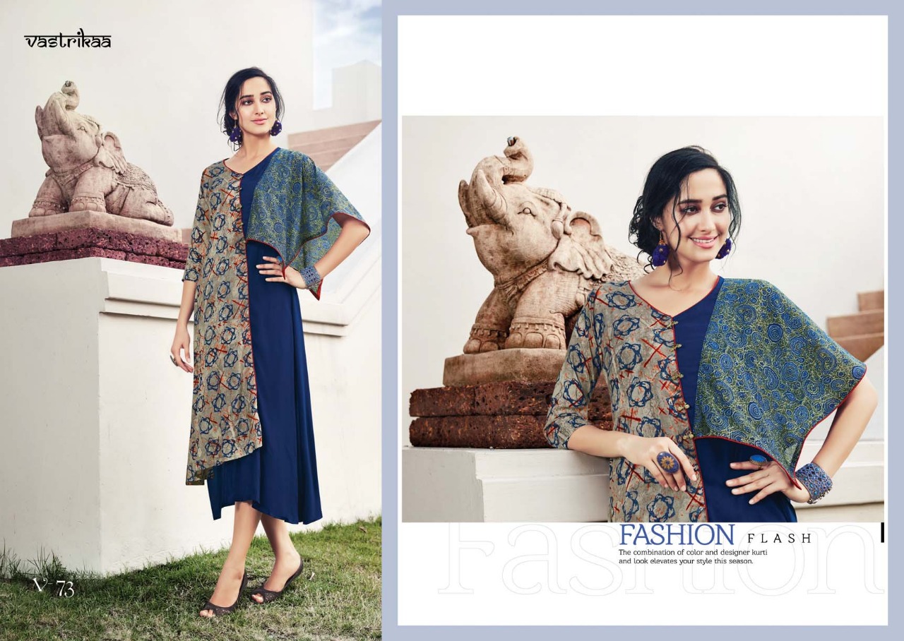 Buy Online Vastrikaa Sensation Vol 3 Reyon Work Patterns Kurtis Catalog Wholesale Supplier And Dealer Surat 6 Pcs of Full Catalogue at Wholesale Price. Looking for Vastrikaa Sensation Vol 3 Reyon Work Patterns Kurtis Catalog Wholesale Supplier And Dealer Surat Full Catalouge at Best Price? Buy Now Vastrikaa Sensation Vol 3 Reyon Work Patterns Kurtis Catalog Wholesale Supplier And Dealer Surat at Wholesale Rate of Rs 4380 with Total 6 Pcs from authroized dealer and supplier of VASTRIKAA Brand. Cost of Each piece is just only Rs 730 which is very low and affordable price to resale the product in your retail store ,This is Surat based Wholesale Supplier & Dealer of VASTRIKAA Brand. Click on Brand name to Know more about VASTRIKAA Brand's products.Call or Whatsapp on 9898838984 for booking or enquiry