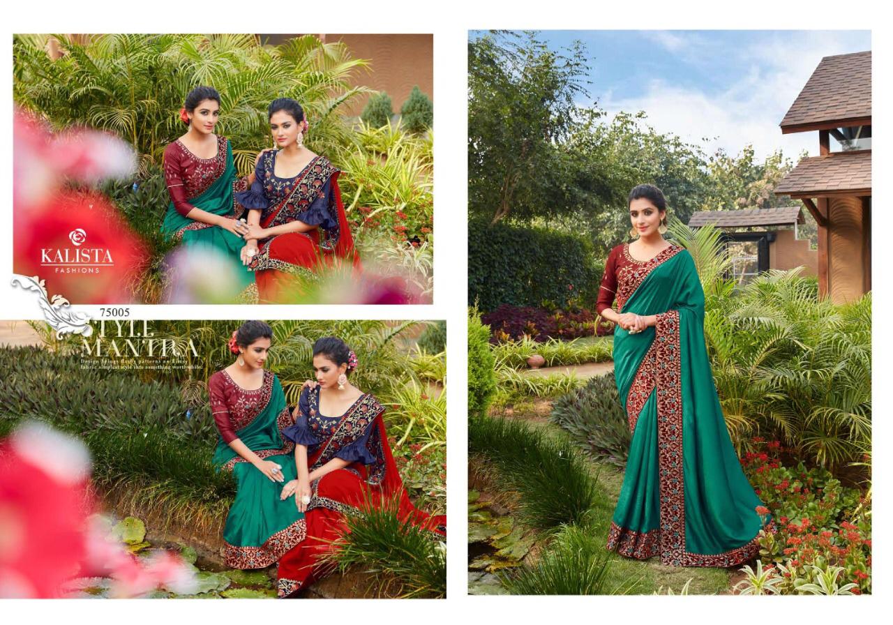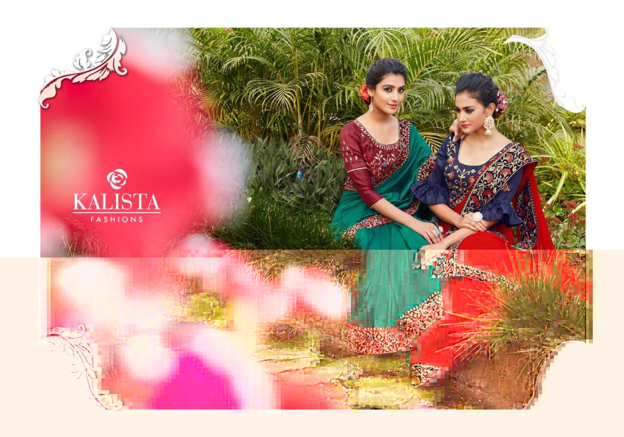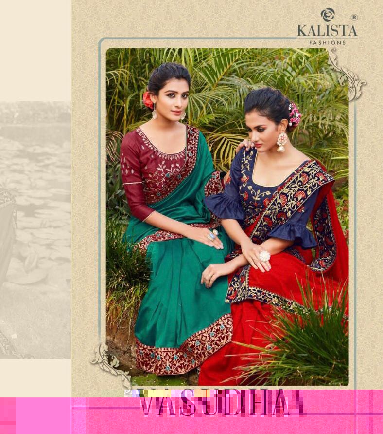 Buy Online Vasudha By Kalista Saree Manufacturer Traders Surat 5 Pcs of Full Catalogue at Wholesale Price. Looking for Vasudha By Kalista Saree Manufacturer Traders Surat Full Catalouge at Best Price? Buy Now Vasudha By Kalista Saree Manufacturer Traders Surat at Wholesale Rate of Rs 4975 with Total 5 Pcs from authroized dealer and supplier of KALISTA FASHION Brand. Cost of Each piece is just only Rs 995 which is very low and affordable price to resale the product in your retail store ,This is Surat based Wholesale Supplier & Dealer of KALISTA FASHION Brand. Click on Brand name to Know more about KALISTA FASHION Brand's products.Call or Whatsapp on 9898838984 for booking or enquiry