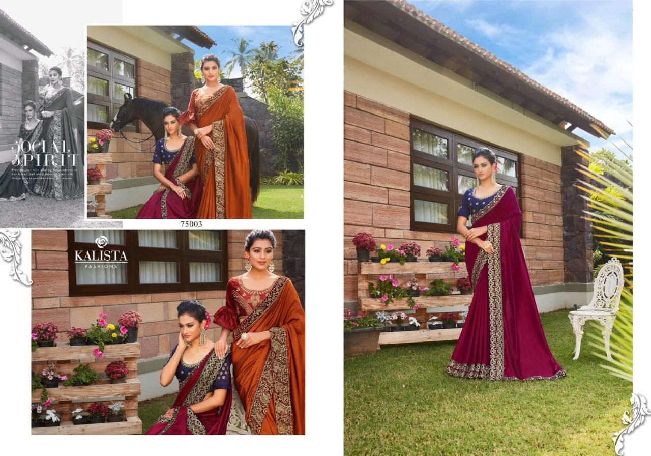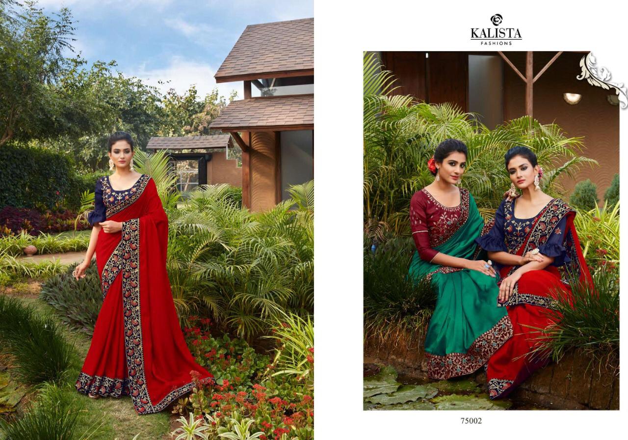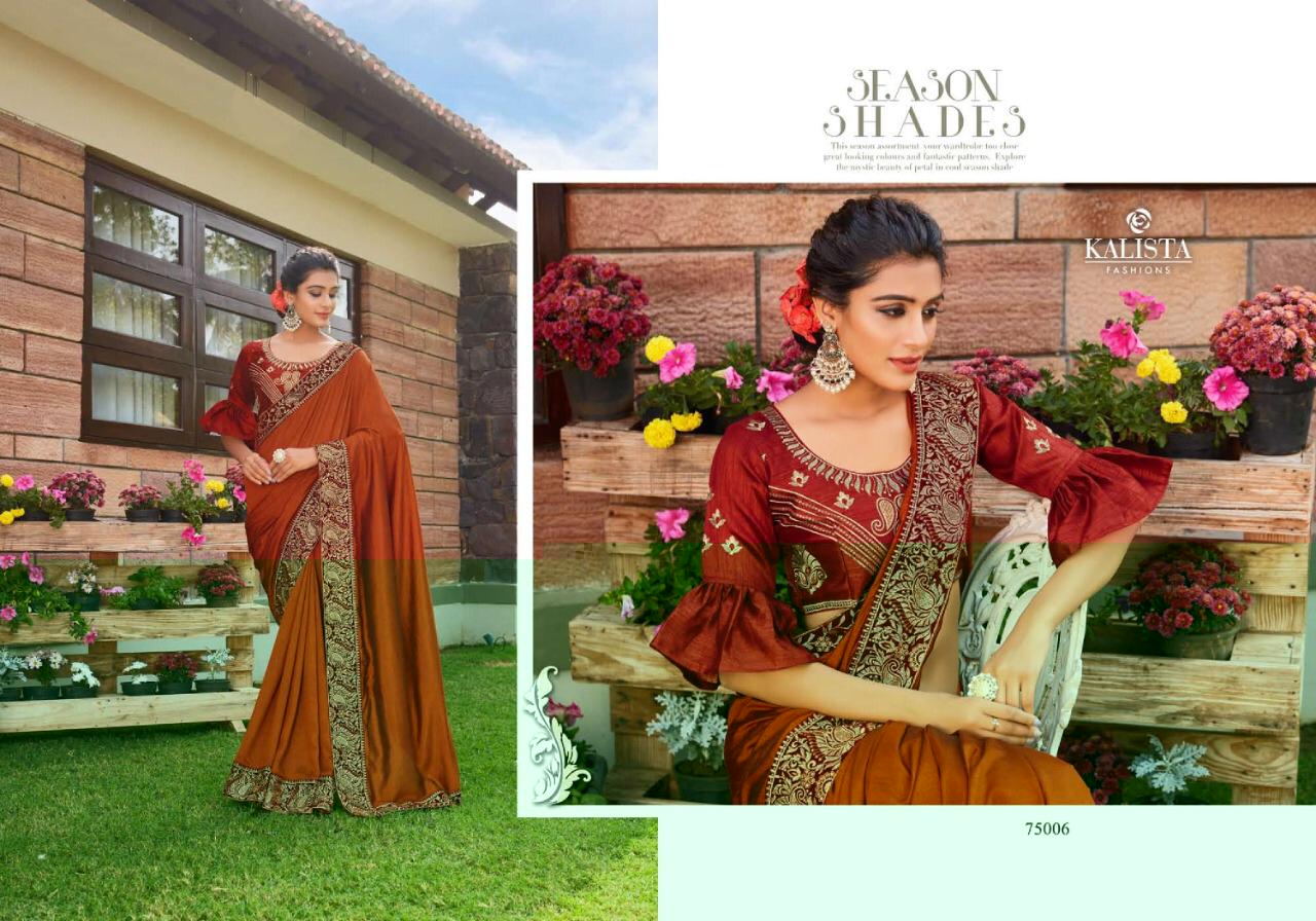 Buy Online Vasudha By Kalista Saree Manufacturer Traders Surat 5 Pcs of Full Catalogue at Wholesale Price. Looking for Vasudha By Kalista Saree Manufacturer Traders Surat Full Catalouge at Best Price? Buy Now Vasudha By Kalista Saree Manufacturer Traders Surat at Wholesale Rate of Rs 4975 with Total 5 Pcs from authroized dealer and supplier of KALISTA FASHION Brand. Cost of Each piece is just only Rs 995 which is very low and affordable price to resale the product in your retail store ,This is Surat based Wholesale Supplier & Dealer of KALISTA FASHION Brand. Click on Brand name to Know more about KALISTA FASHION Brand's products.Call or Whatsapp on 9898838984 for booking or enquiry