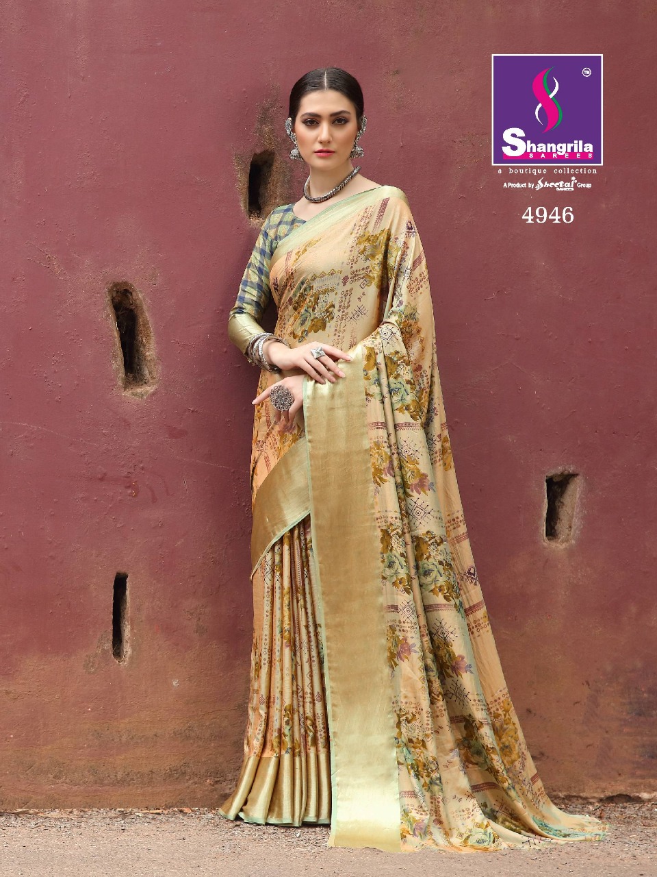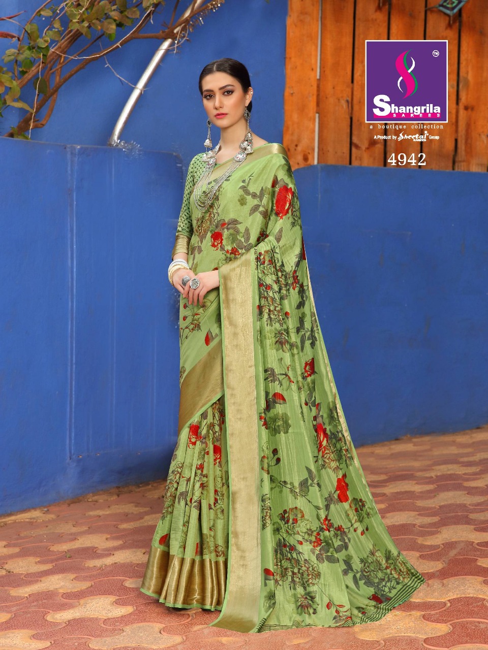 Buy Online Vasundhara By Shangrila Series 4941 To 4952 Floral Printed Sarees Wholesale Supplier And Dealer Surat 12 Pcs of Full Catalogue at Wholesale Price. Looking for Vasundhara By Shangrila Series 4941 To 4952 Floral Printed Sarees Wholesale Supplier And Dealer Surat Full Catalouge at Best Price? Buy Now Vasundhara By Shangrila Series 4941 To 4952 Floral Printed Sarees Wholesale Supplier And Dealer Surat at Wholesale Rate of Rs 8340 with Total 12 Pcs from authroized dealer and supplier of SHANGRILA Brand. Cost of Each piece is just only Rs 695 which is very low and affordable price to resale the product in your retail store ,This is Surat based Wholesale Supplier & Dealer of SHANGRILA Brand. Click on Brand name to Know more about SHANGRILA Brand's products.Call or Whatsapp on 9898838984 for booking or enquiry