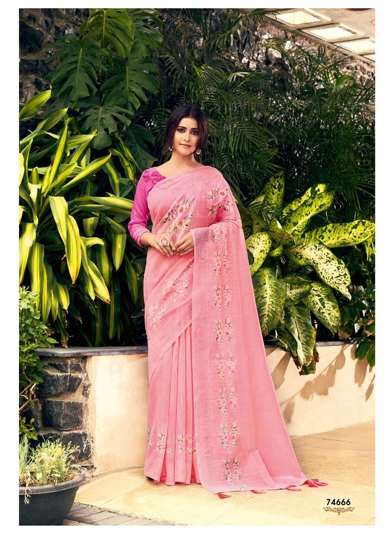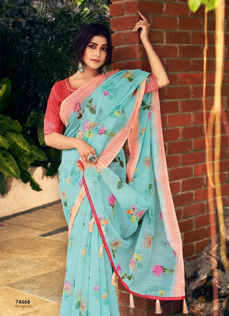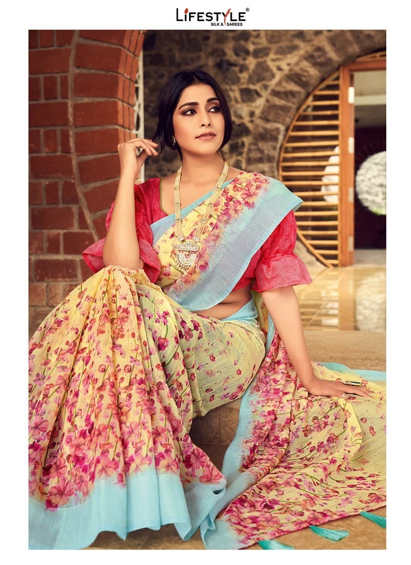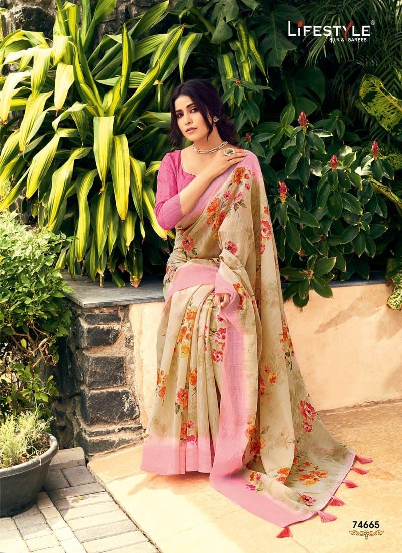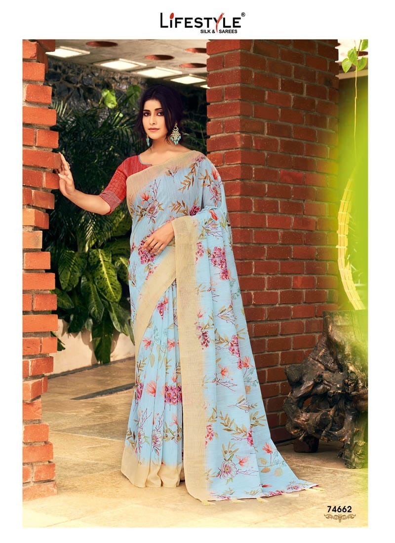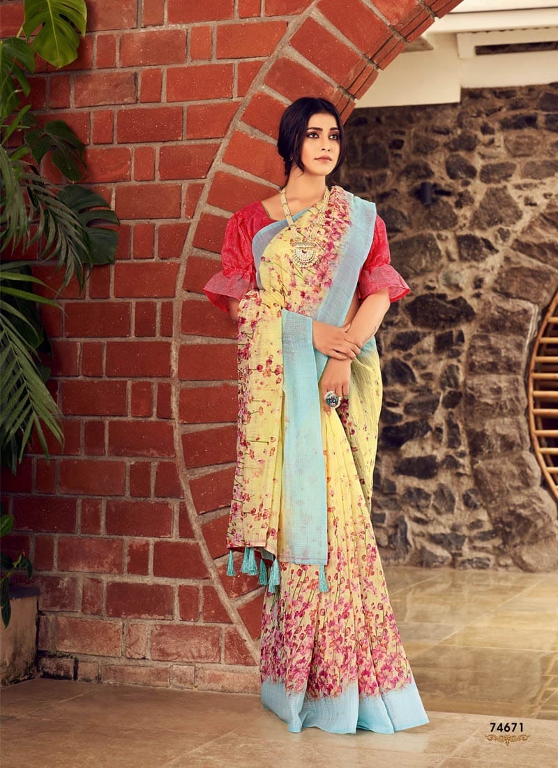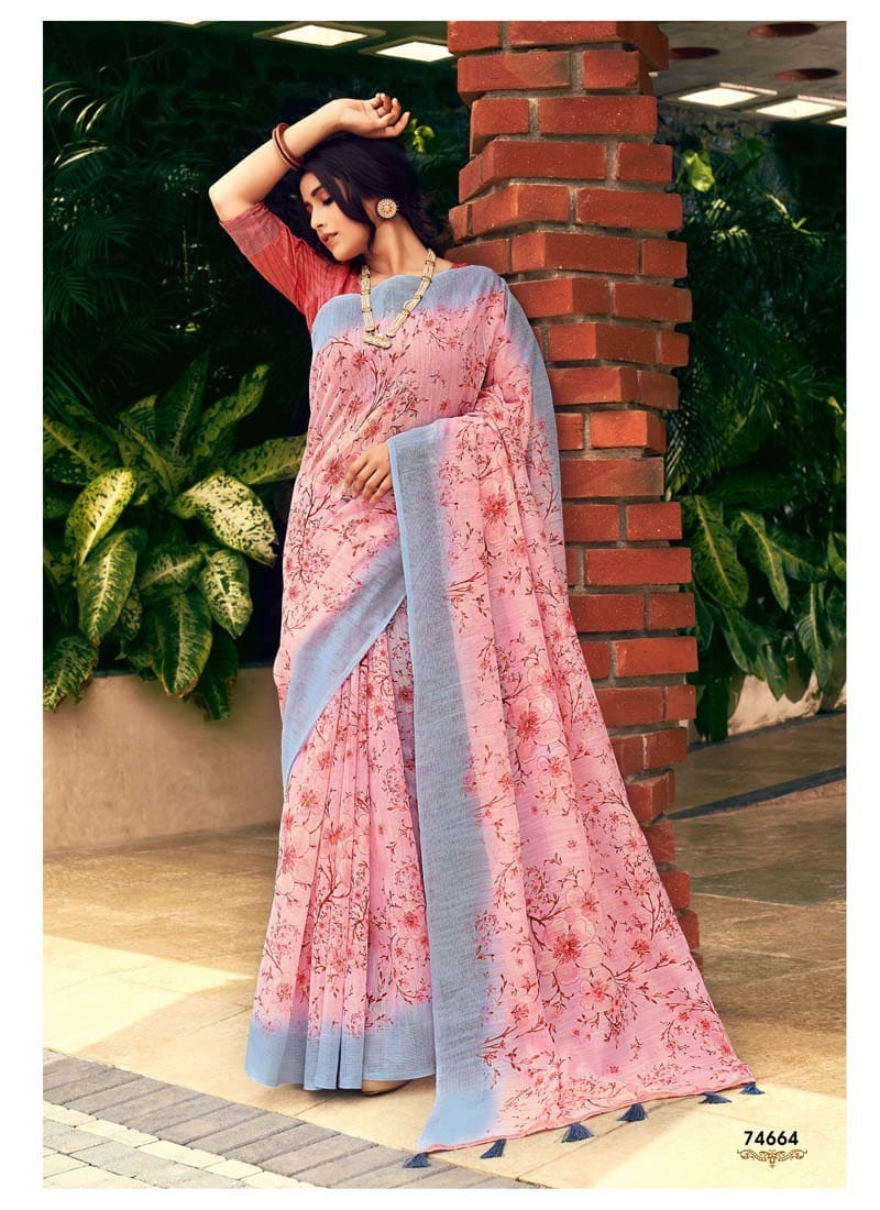 Brand = *LIFESTYLE* Catalog :- *VASUNDHARA COTTON* Volume :- 1 Fabric :- *LINEN SILK* Packing :- BOX Ex-mill Price :- *601 per pcs * Cut/Length :- 6.4 FANCY LINEN COTTON PRINT SAREE PACKING - Today |