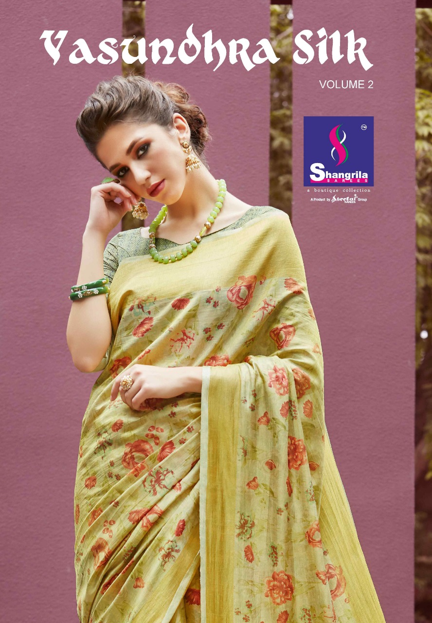 Buy Online Vasundhara Silk Vol 2 By Shangrila Handloom Floral Print Sarees Wholesale Supplier And Trader Surat 12 Pcs of Full Catalogue at Wholesale Price. Looking for Vasundhara Silk Vol 2 By Shangrila Handloom Floral Print Sarees Wholesale Supplier And Trader Surat Full Catalouge at Best Price? Buy Now Vasundhara Silk Vol 2 By Shangrila Handloom Floral Print Sarees Wholesale Supplier And Trader Surat at Wholesale Rate of Rs 8760 with Total 12 Pcs from authroized dealer and supplier of SHANGRILA Brand. Cost of Each piece is just only Rs 730 which is very low and affordable price to resale the product in your retail store ,This is Surat based Wholesale Supplier & Dealer of SHANGRILA Brand. Click on Brand name to Know more about SHANGRILA Brand's products.Call or Whatsapp on 9898838984 for booking or enquiry