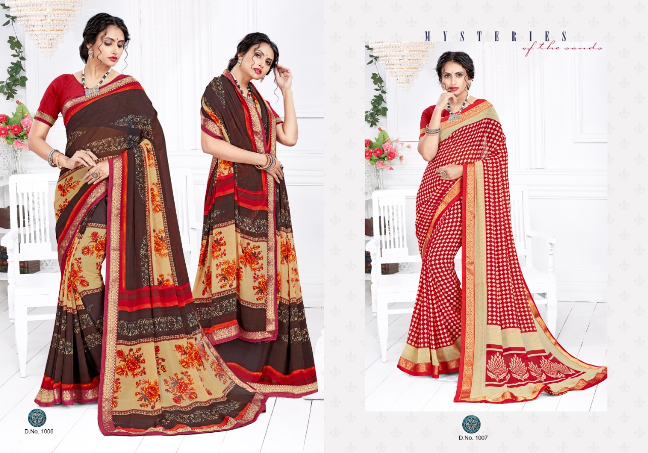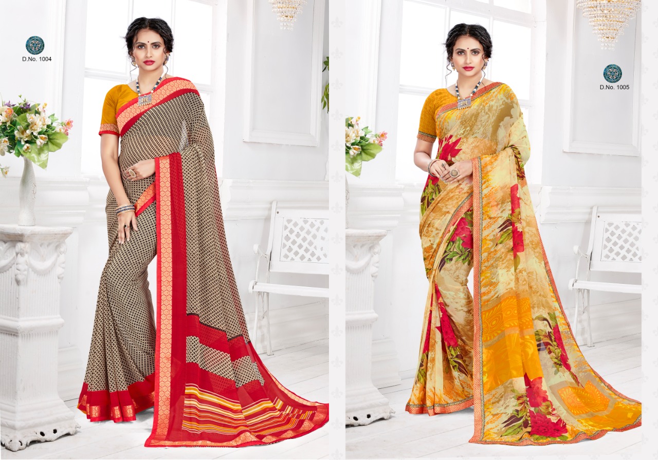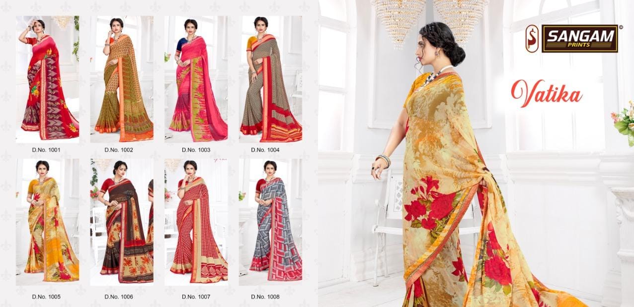 Brand - Sangam . Catalog Name : VATIKA Saree Size : 5.50 Mtr Blouse Fabric : 0.80 Mtr Saree Fabric : GEORGETTE Blouse Fabric : GEORGETTE Price : 500/-Gst Extra Singles Available . Set available. Delivery from today 100+single |