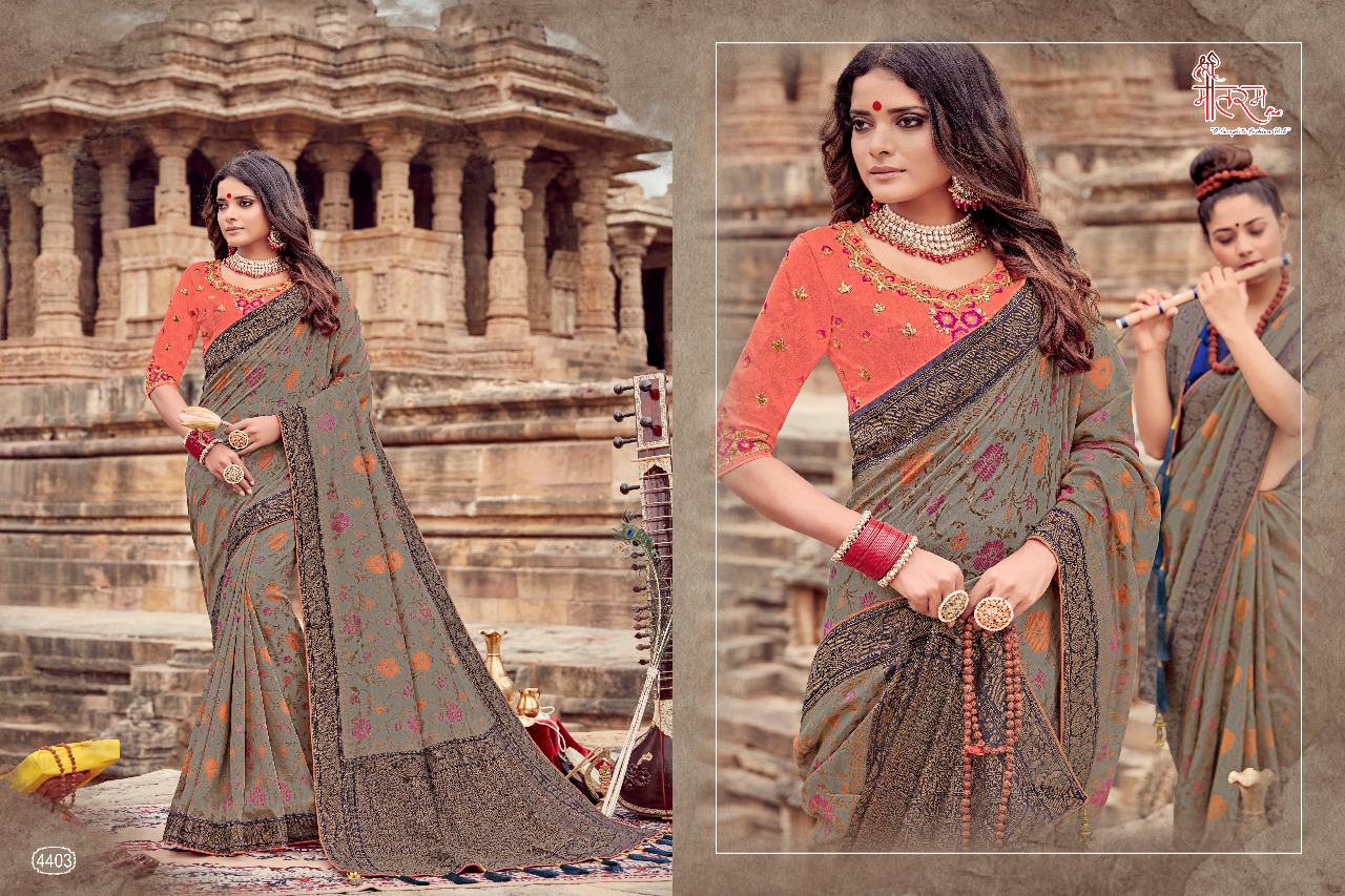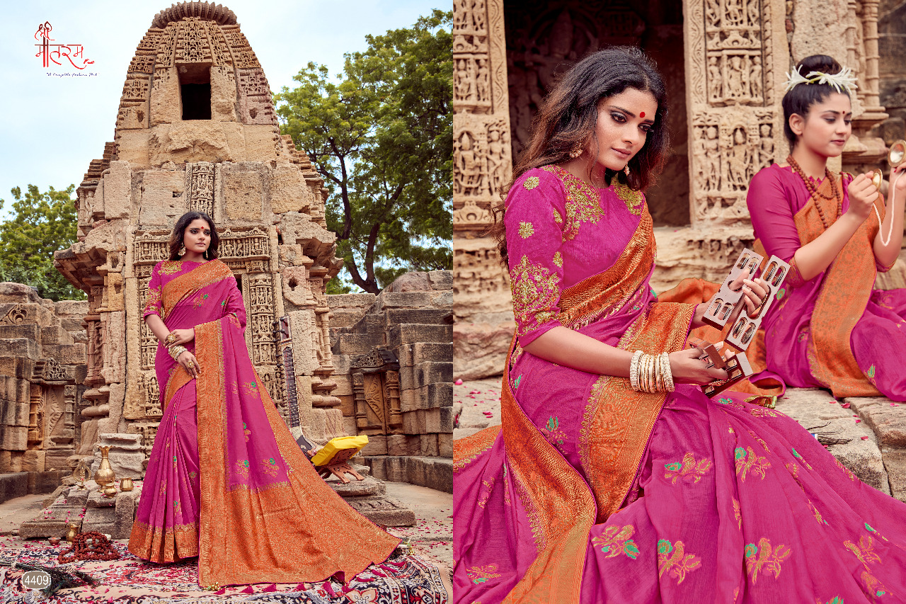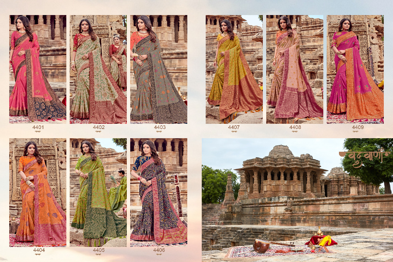 Buy Online Ved Vani By Maataram Series 4401 To 4409 Nylon Viscose Sarees Wholesale Supplier And Dealer Surat 9 Pcs of Full Catalogue at Wholesale Price. Looking for Ved Vani By Maataram Series 4401 To 4409 Nylon Viscose Sarees Wholesale Supplier And Dealer Surat Full Catalouge at Best Price? Buy Now Ved Vani By Maataram Series 4401 To 4409 Nylon Viscose Sarees Wholesale Supplier And Dealer Surat at Wholesale Rate of Rs 24750 with Total 9 Pcs from authroized dealer and supplier of Shree Mathram Brand. Cost of Each piece is just only Rs 2750 which is very low and affordable price to resale the product in your retail store ,This is Surat based Wholesale Supplier & Dealer of Shree Mathram Brand. Click on Brand name to Know more about Shree Mathram Brand's products.Call or Whatsapp on 9898838984 for booking or enquiry