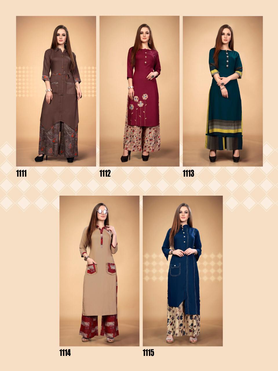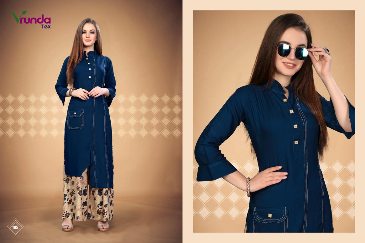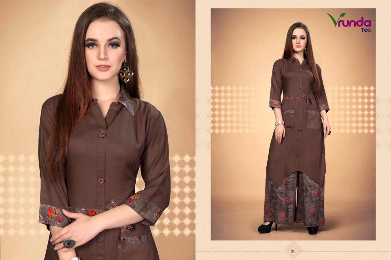 Buy Online Vedanshi By Vrunda Tex Reyon Kurtis With Plazzo Wholesale Supplier And Dealer Surat 5 Pcs of Full Catalogue at Wholesale Price. Looking for Vedanshi By Vrunda Tex Reyon Kurtis With Plazzo Wholesale Supplier And Dealer Surat Full Catalouge at Best Price? Buy Now Vedanshi By Vrunda Tex Reyon Kurtis With Plazzo Wholesale Supplier And Dealer Surat at Wholesale Rate of Rs 3325 with Total 5 Pcs from authroized dealer and supplier of Brand. Cost of Each piece is just only Rs 665 which is very low and affordable price to resale the product in your retail store ,This is Surat based Wholesale Supplier & Dealer of Brand. Click on Brand name to Know more about Brand's products.Call or Whatsapp on 9898838984 for booking or enquiry