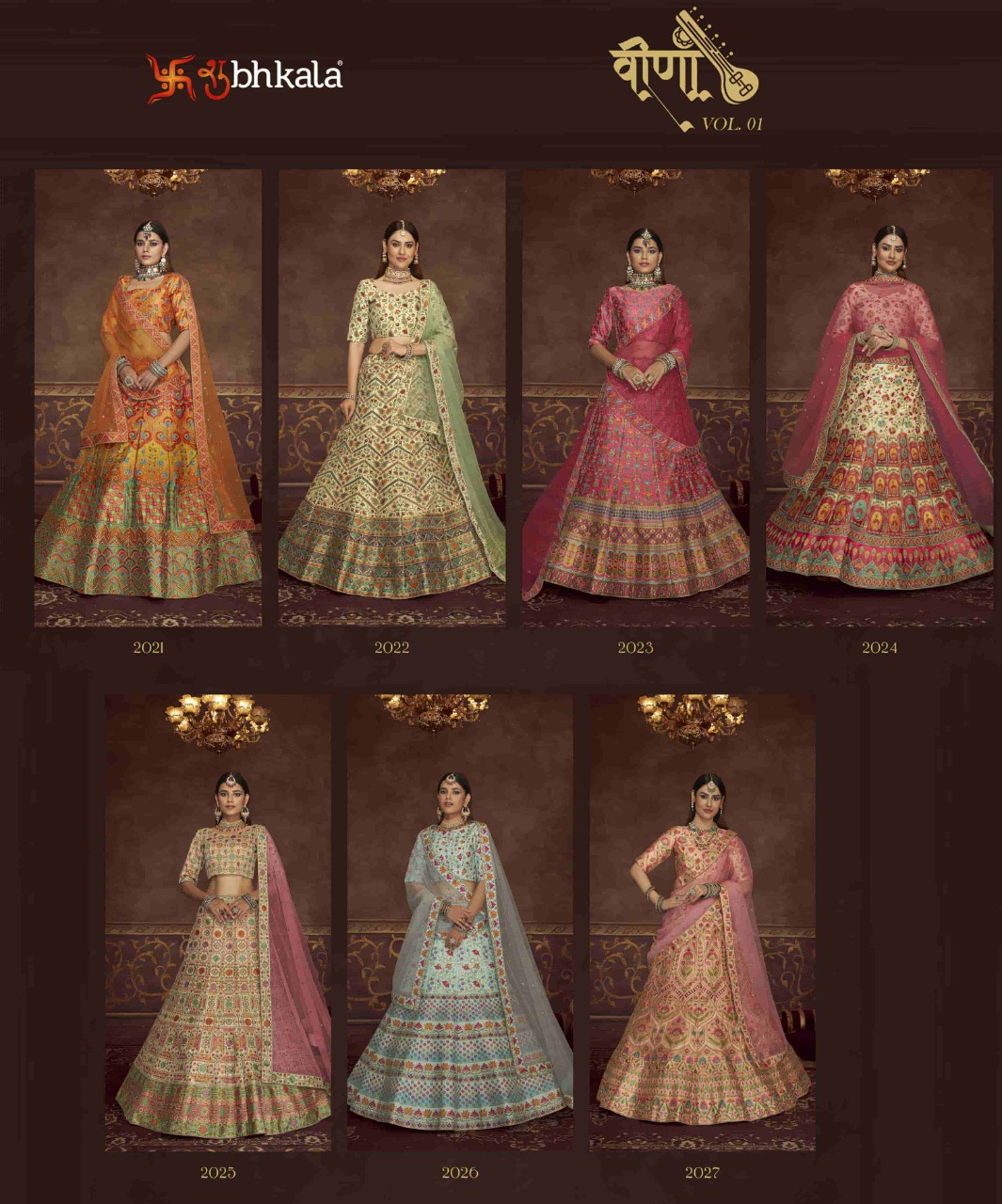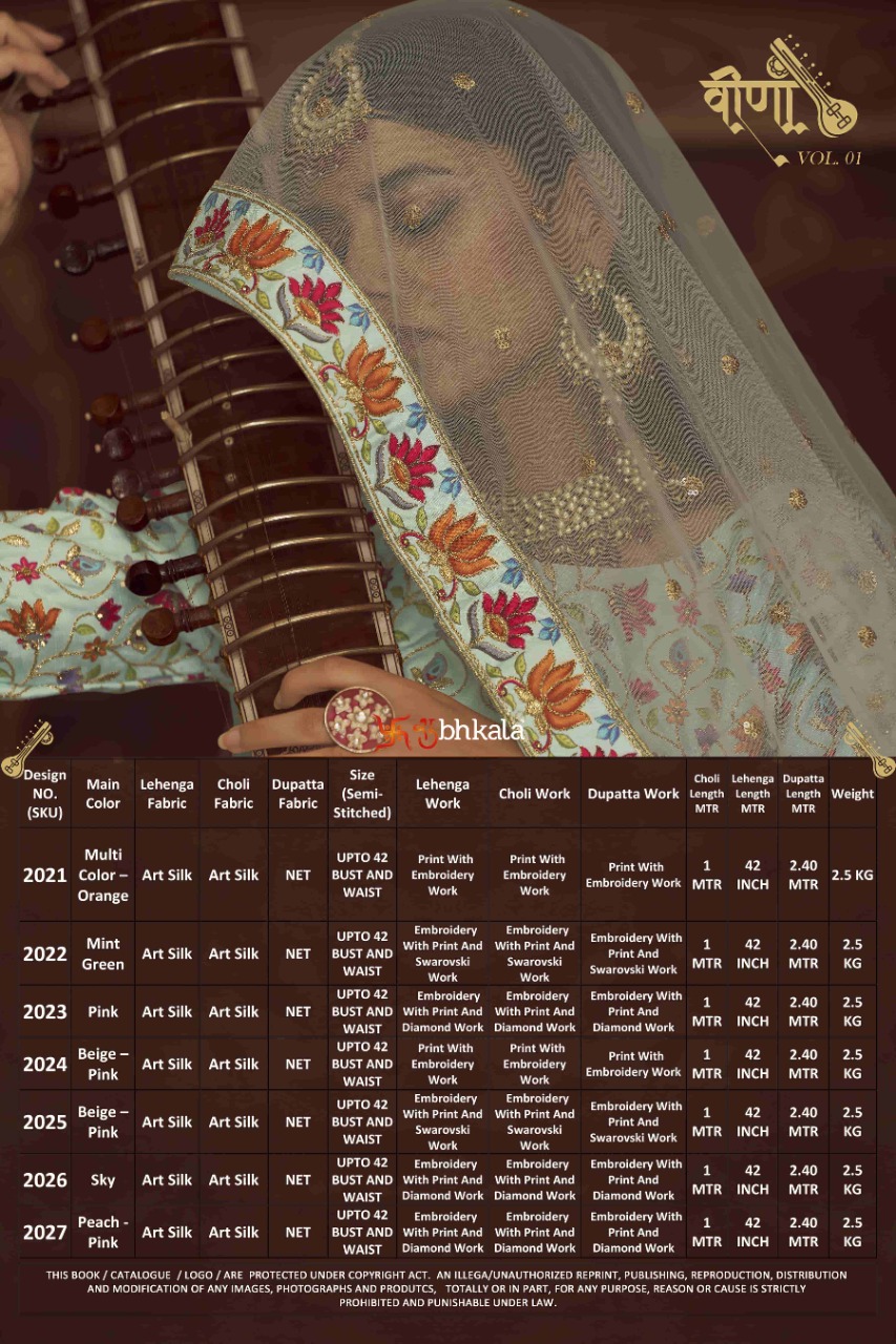 Buy Online Veena By Shubhkala Semi Stitched Lehenga Choli Collection 7 Pcs of Full Catalogue at Wholesale Price. Looking for Veena By Shubhkala Semi Stitched Lehenga Choli Collection Full Catalouge at Best Price? Buy Now Veena By Shubhkala Semi Stitched Lehenga Choli Collection at Wholesale Rate of Rs 0 with Total 7 Pcs from authroized dealer and supplier of Brand. Cost of Each piece is just only Rs 0 which is very low and affordable price to resale the product in your retail store ,This is Surat based Wholesale Supplier & Dealer of Brand. Click on Brand name to Know more about Brand's products.Call or Whatsapp on 9898838984 for booking or enquiry