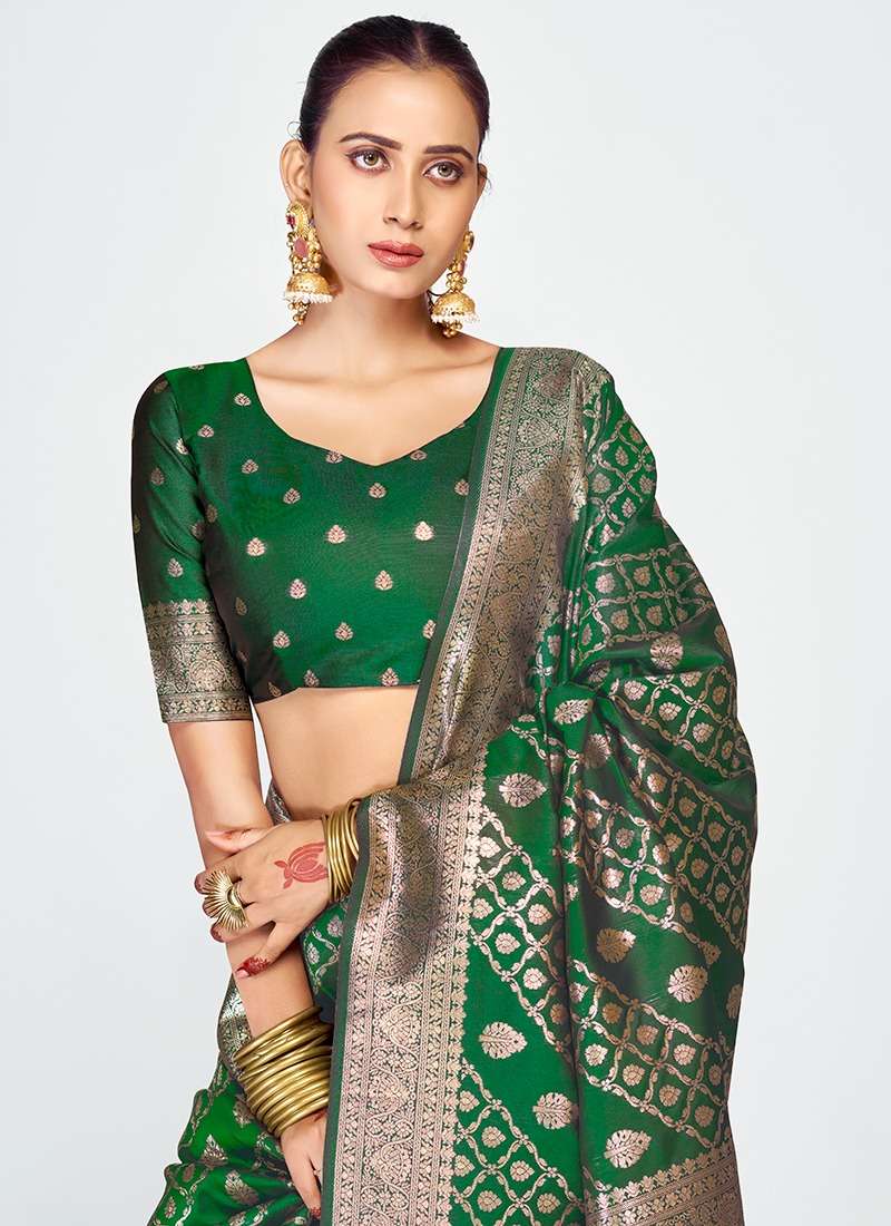 👉👉 *Banarasi Silk* with beautiful *weaving work* all over… same fabric blouse 👚✨ Royal look… premium shine… perfect for any function 😍💃