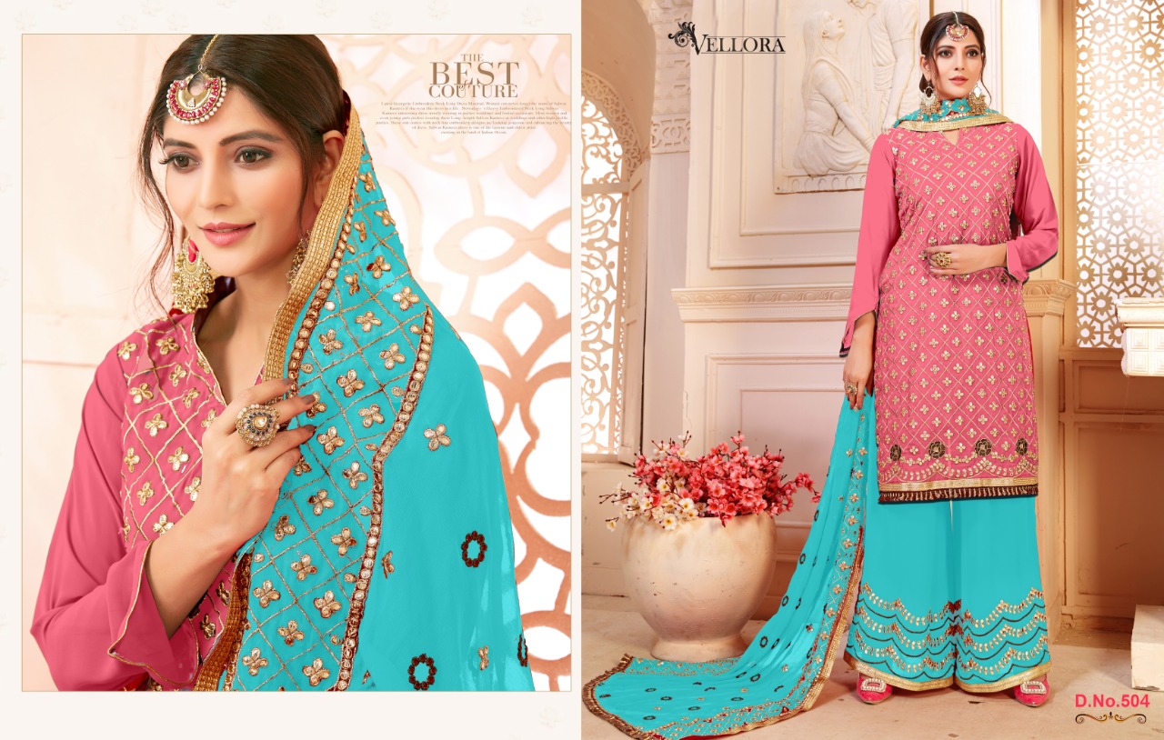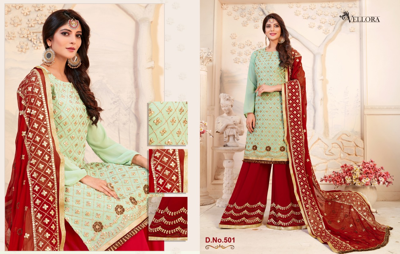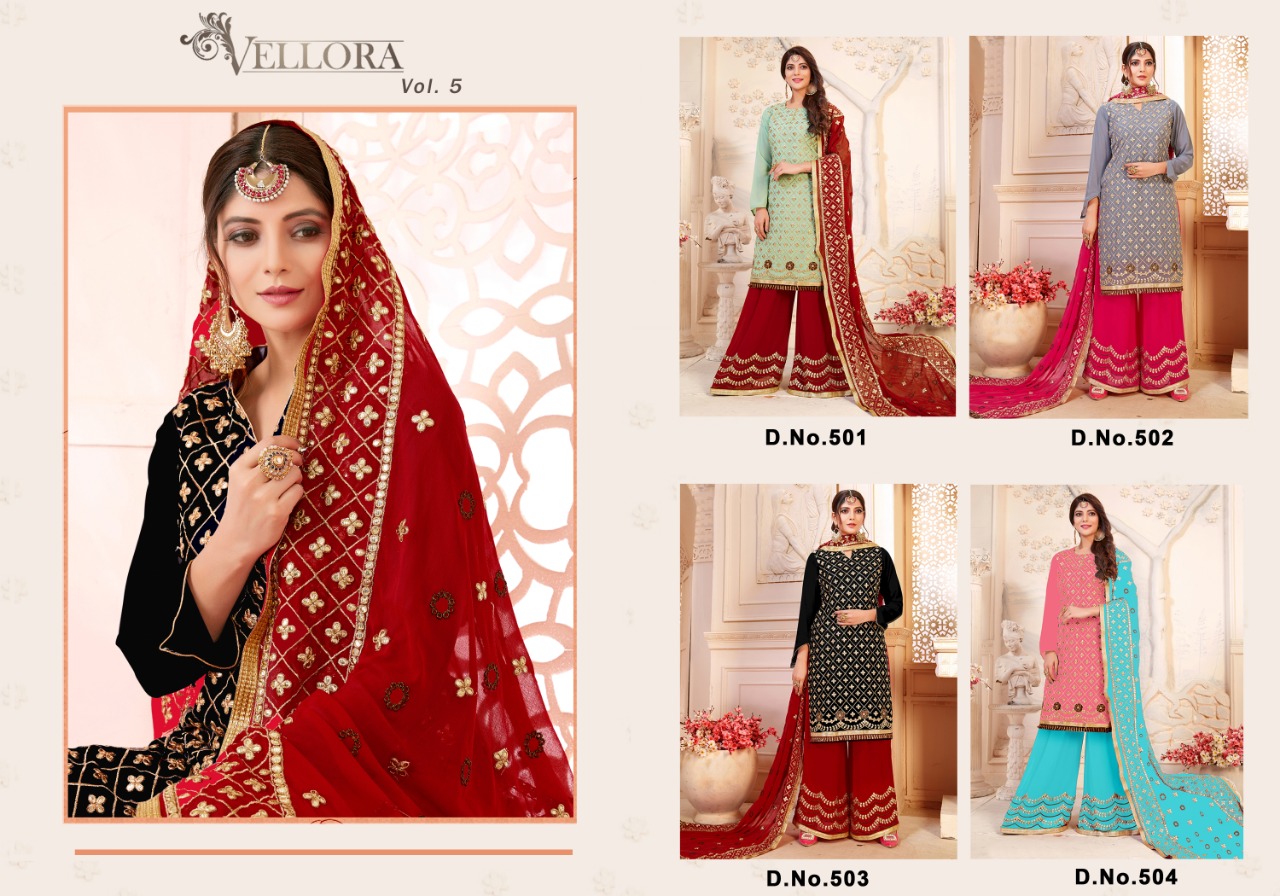 Buy Online Vellora Vol 5 Gotta Patti Plazzo Suit Contrast Dupatta Concept 4 Pcs of Full Catalogue at Wholesale Price. Looking for Vellora Vol 5 Gotta Patti Plazzo Suit Contrast Dupatta Concept Full Catalouge at Best Price? Buy Now Vellora Vol 5 Gotta Patti Plazzo Suit Contrast Dupatta Concept at Wholesale Rate of Rs 6780 with Total 4 Pcs from authroized dealer and supplier of Brand. Cost of Each piece is just only Rs 1695 which is very low and affordable price to resale the product in your retail store ,This is Surat based Wholesale Supplier & Dealer of Brand. Click on Brand name to Know more about Brand's products.Call or Whatsapp on 9898838984 for booking or enquiry