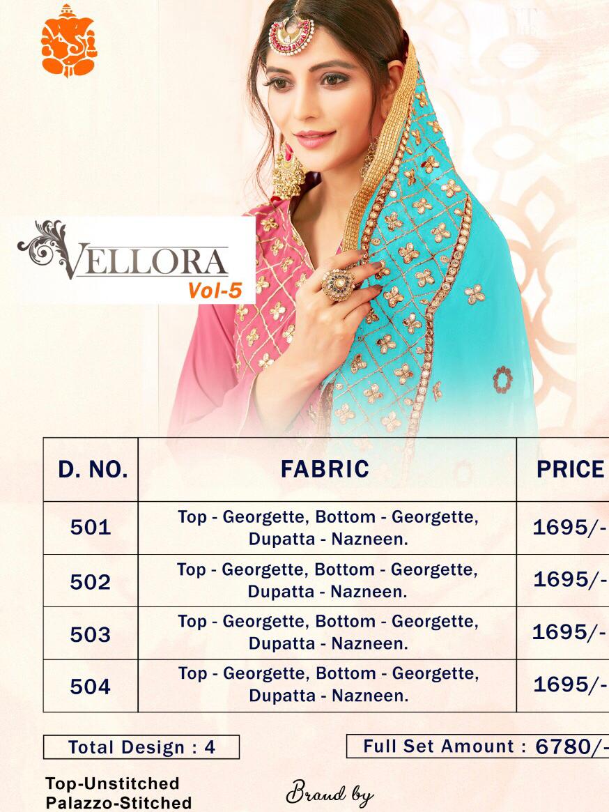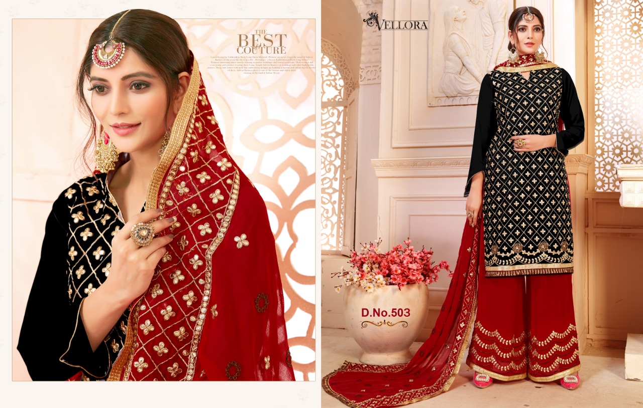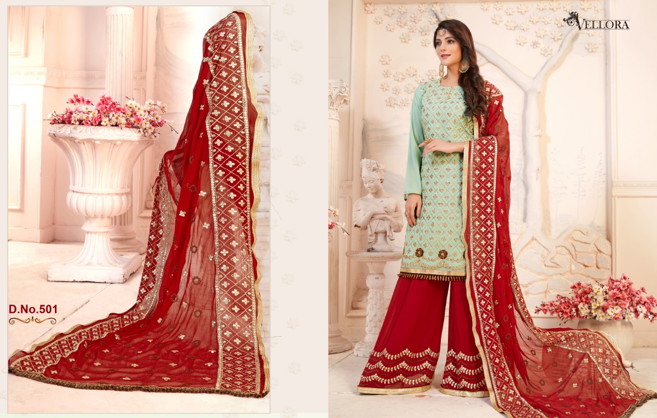 Buy Online Vellora Vol 5 Gotta Patti Plazzo Suit Contrast Dupatta Concept 4 Pcs of Full Catalogue at Wholesale Price. Looking for Vellora Vol 5 Gotta Patti Plazzo Suit Contrast Dupatta Concept Full Catalouge at Best Price? Buy Now Vellora Vol 5 Gotta Patti Plazzo Suit Contrast Dupatta Concept at Wholesale Rate of Rs 6780 with Total 4 Pcs from authroized dealer and supplier of Brand. Cost of Each piece is just only Rs 1695 which is very low and affordable price to resale the product in your retail store ,This is Surat based Wholesale Supplier & Dealer of Brand. Click on Brand name to Know more about Brand's products.Call or Whatsapp on 9898838984 for booking or enquiry