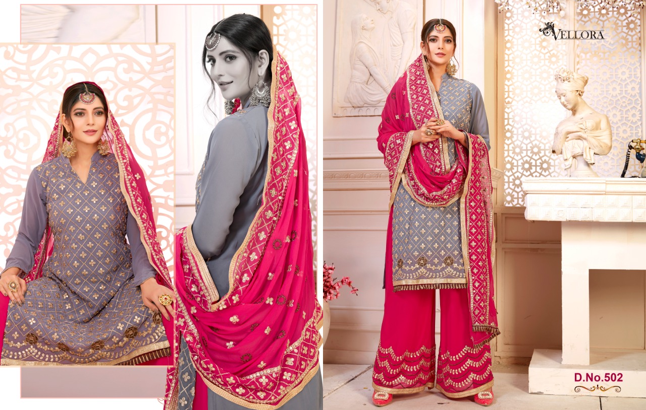 Vellora Vol 5 Gotta Patti Plazzo Suit Contrast Dupatta Concept