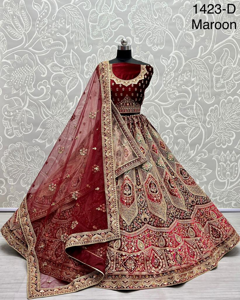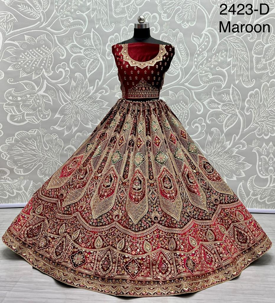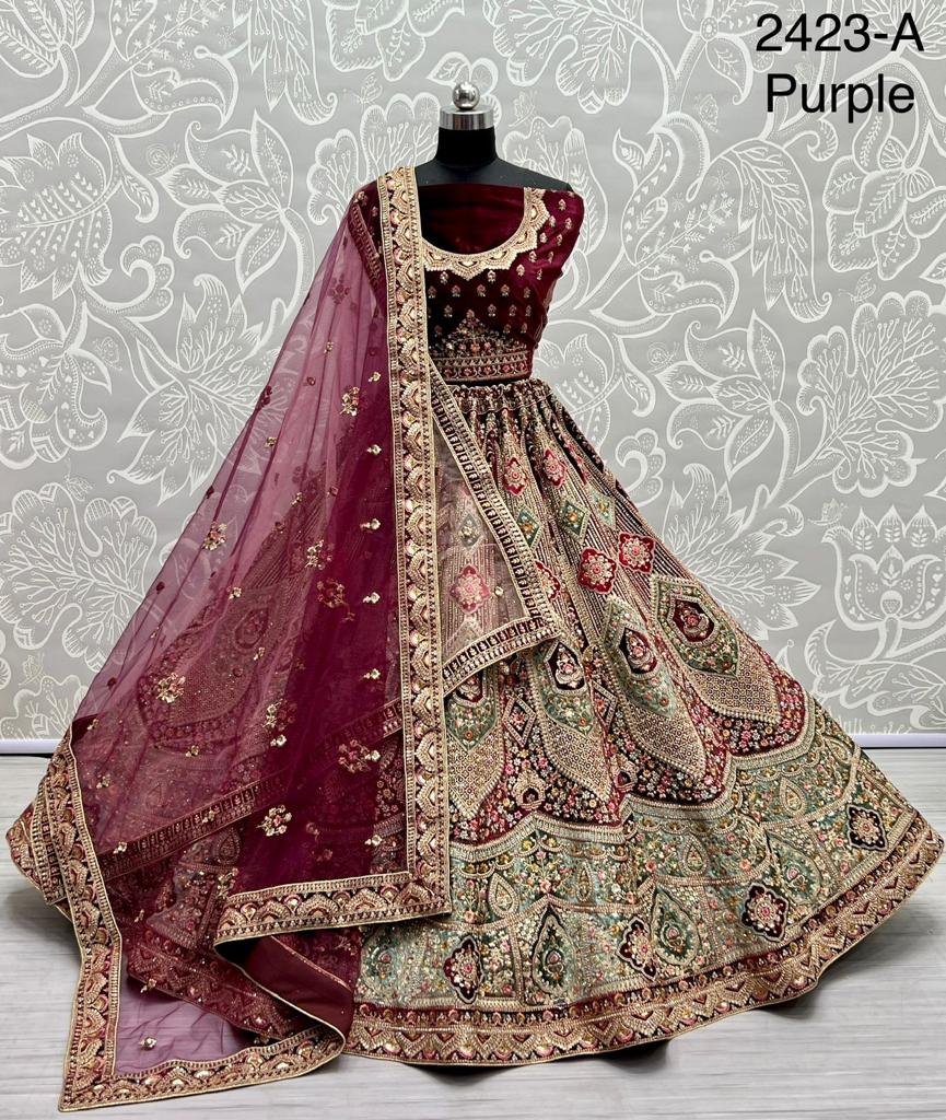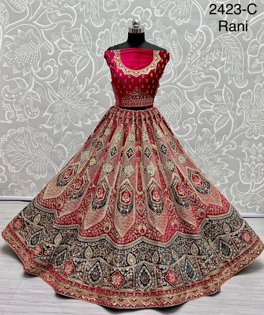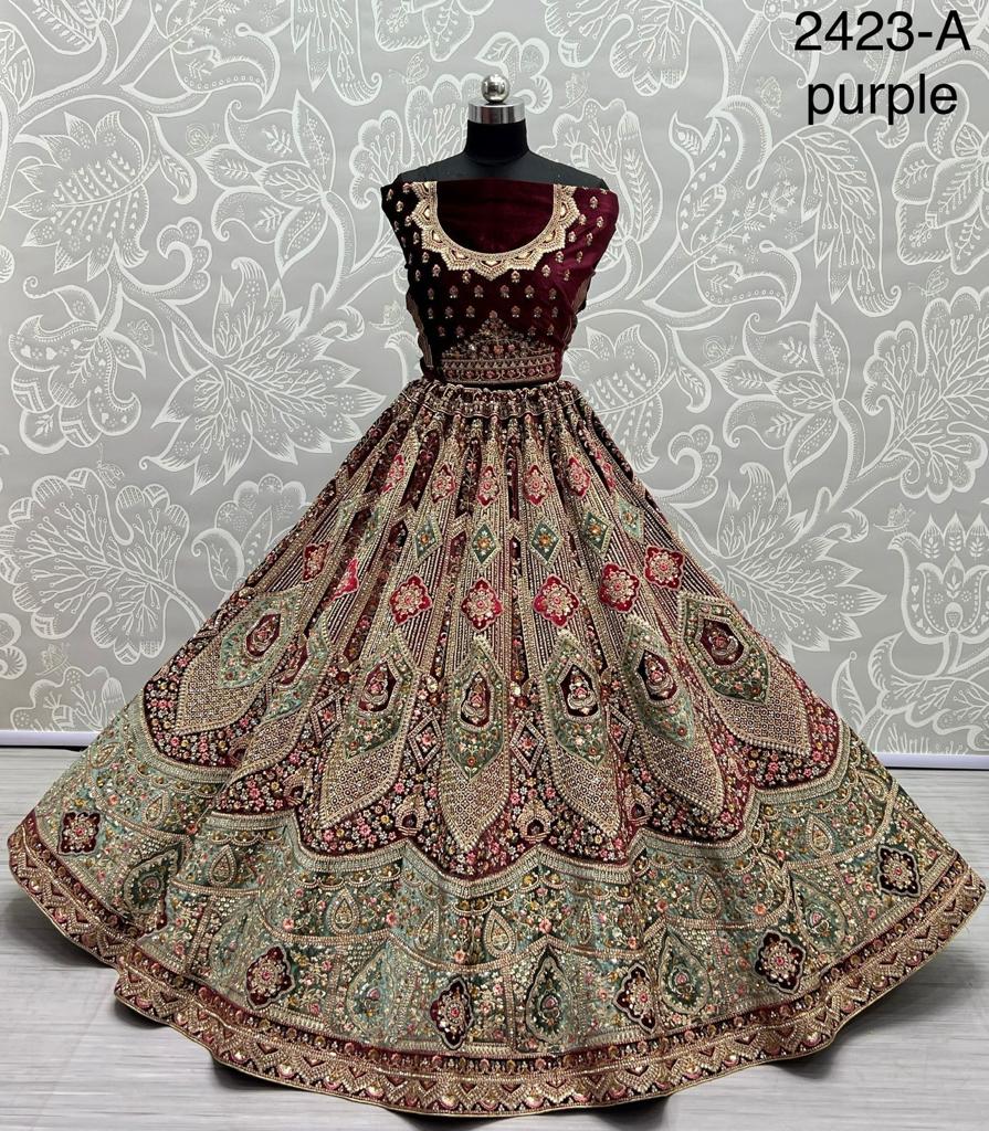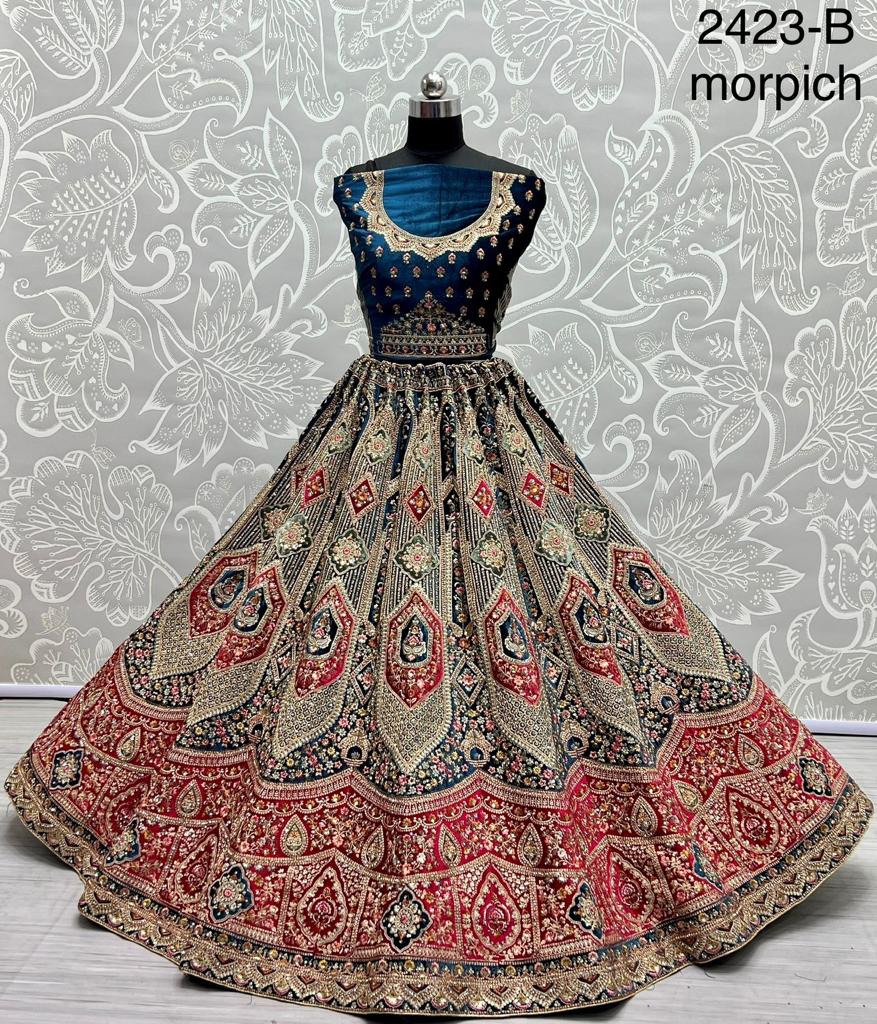 Buy Online Velvet 2423 Patch And Multi Color Combine Designer Bridal Lehengacholi With Double Dupatta 4 Pcs of Full Catalogue at Wholesale Price. Looking for Velvet 2423 Patch And Multi Color Combine Designer Bridal Lehengacholi With Double Dupatta Full Catalouge at Best Price? Buy Now Velvet 2423 Patch And Multi Color Combine Designer Bridal Lehengacholi With Double Dupatta at Wholesale Rate of Rs 67996 with Total 4 Pcs from authroized dealer and supplier of Brand. Cost of Each piece is just only Rs 16999 which is very low and affordable price to resale the product in your retail store ,This is Surat based Wholesale Supplier & Dealer of Brand. Click on Brand name to Know more about Brand's products.Call or Whatsapp on 9898838984 for booking or enquiry