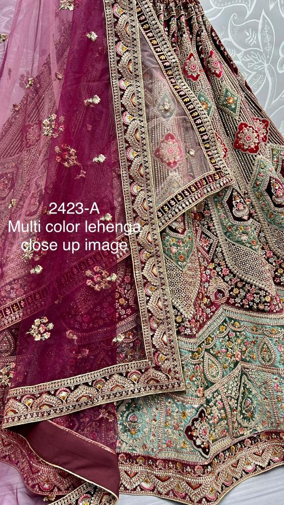 Velvet 2423 Patch And Multi Color Combine Designer Bridal Lehengacholi With Double Dupatta