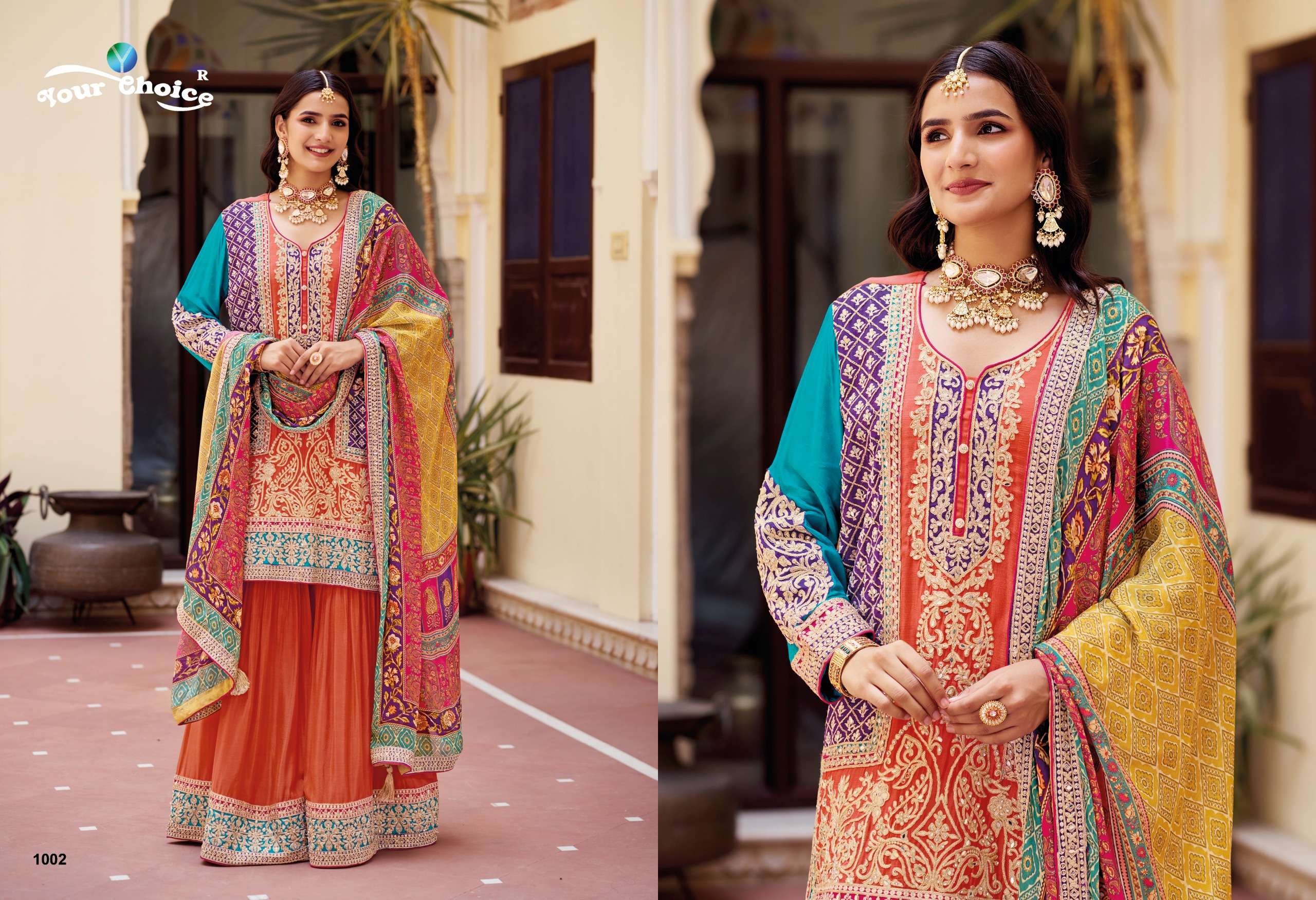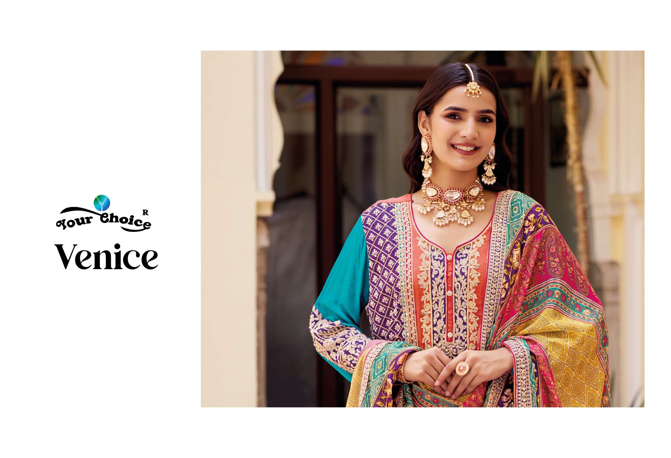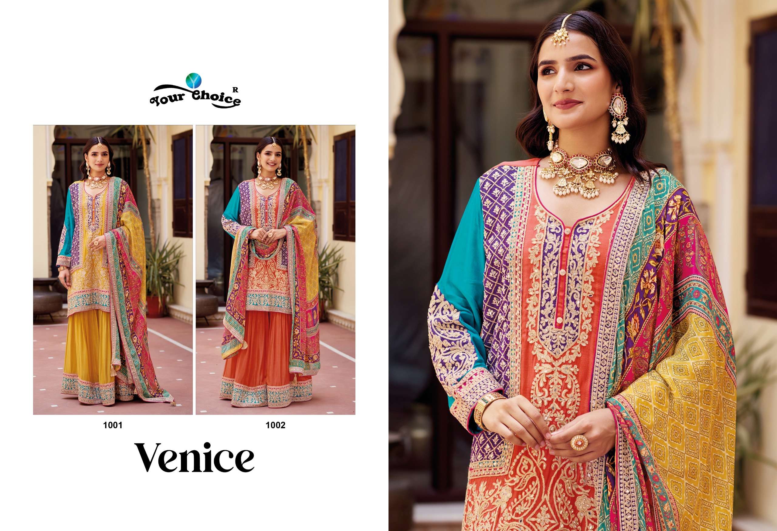 Buy Online Venic by Your choice Heavy Chinon sarara Suit collection manufacturer surat 4 Pcs of Full Catalogue at Wholesale Price. Looking for Venic by Your choice Heavy Chinon sarara Suit collection manufacturer surat Full Catalouge at Best Price? Buy Now Venic by Your choice Heavy Chinon sarara Suit collection manufacturer surat at Wholesale Rate of Rs 11980 with Total 4 Pcs from authroized dealer and supplier of YOUR CHOICE Brand. Cost of Each piece is just only Rs 2995 which is very low and affordable price to resale the product in your retail store ,This is Surat based Wholesale Supplier & Dealer of YOUR CHOICE Brand. Click on Brand name to Know more about YOUR CHOICE Brand's products.Call or Whatsapp on 9898838984 for booking or enquiry