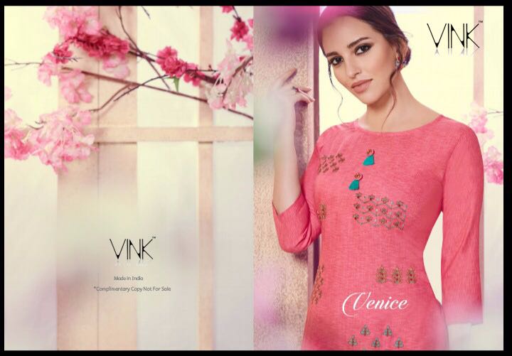 Buy Online Venice By Vink 311 Series Fancy Kurti Catlog Wholesale Dealer And Supplier Surat 6 Pcs of Full Catalogue at Wholesale Price. Looking for Venice By Vink 311 Series Fancy Kurti Catlog Wholesale Dealer And Supplier Surat Full Catalouge at Best Price? Buy Now Venice By Vink 311 Series Fancy Kurti Catlog Wholesale Dealer And Supplier Surat at Wholesale Rate of Rs 3570 with Total 6 Pcs from authroized dealer and supplier of VINK Brand. Cost of Each piece is just only Rs 595 which is very low and affordable price to resale the product in your retail store ,This is Surat based Wholesale Supplier & Dealer of VINK Brand. Click on Brand name to Know more about VINK Brand's products.Call or Whatsapp on 9898838984 for booking or enquiry