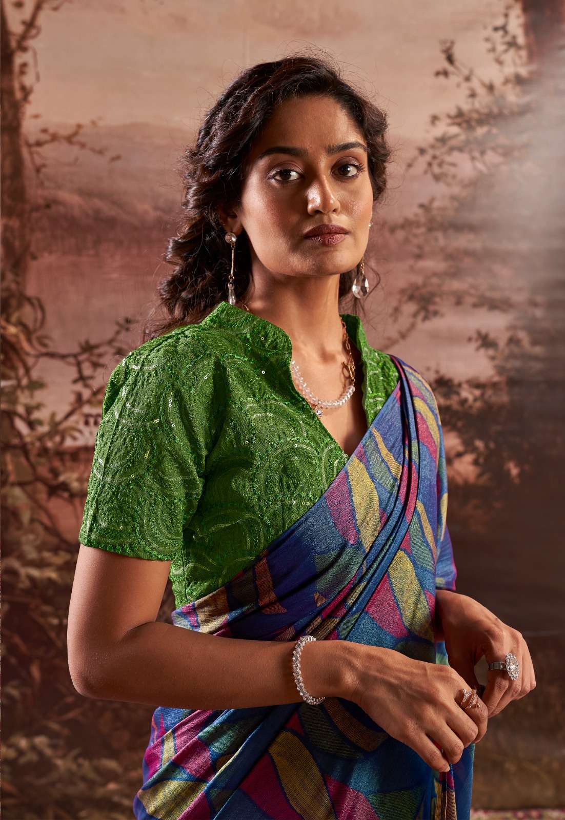 - New 3D Nylon Print - Fancy Embroidery work blouse