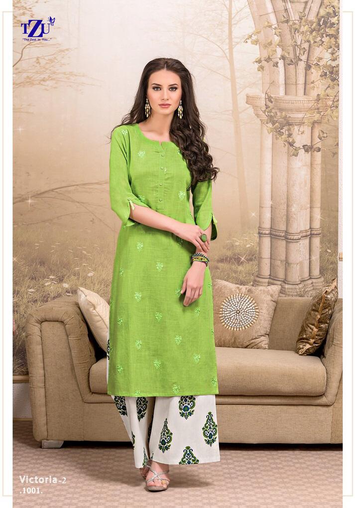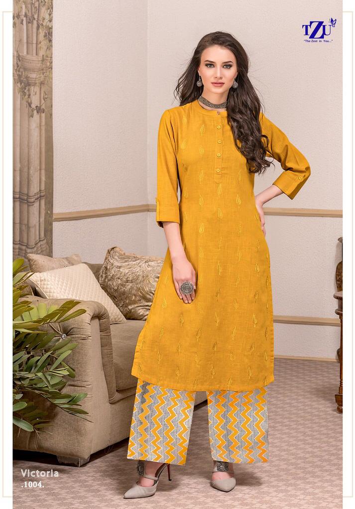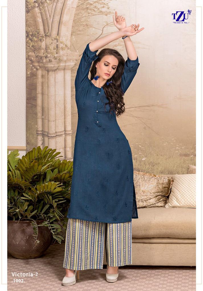 Victoria 2 By Tzu Series 1001 To 1004 Cotton Kurtis With Plazzo Wholesale Supplier Gujarat