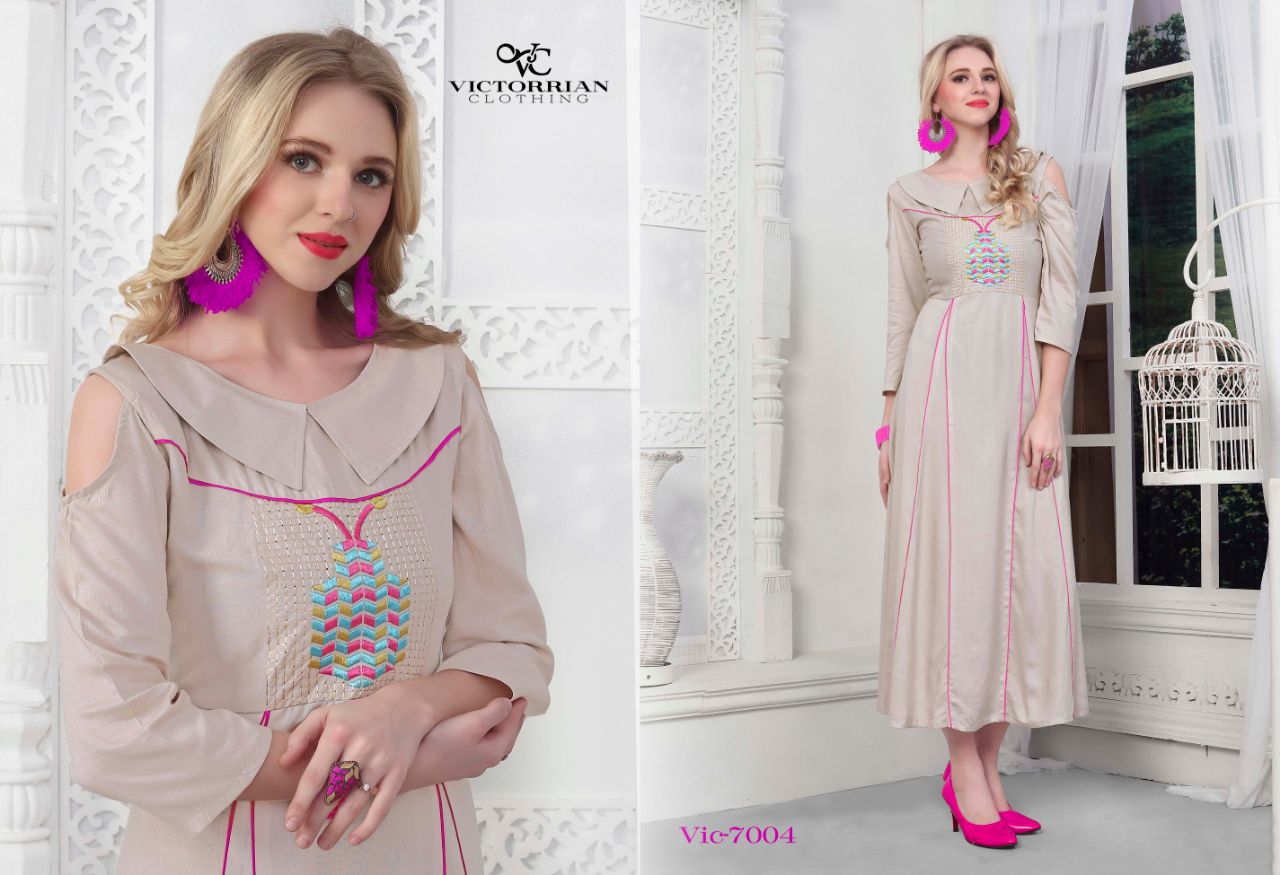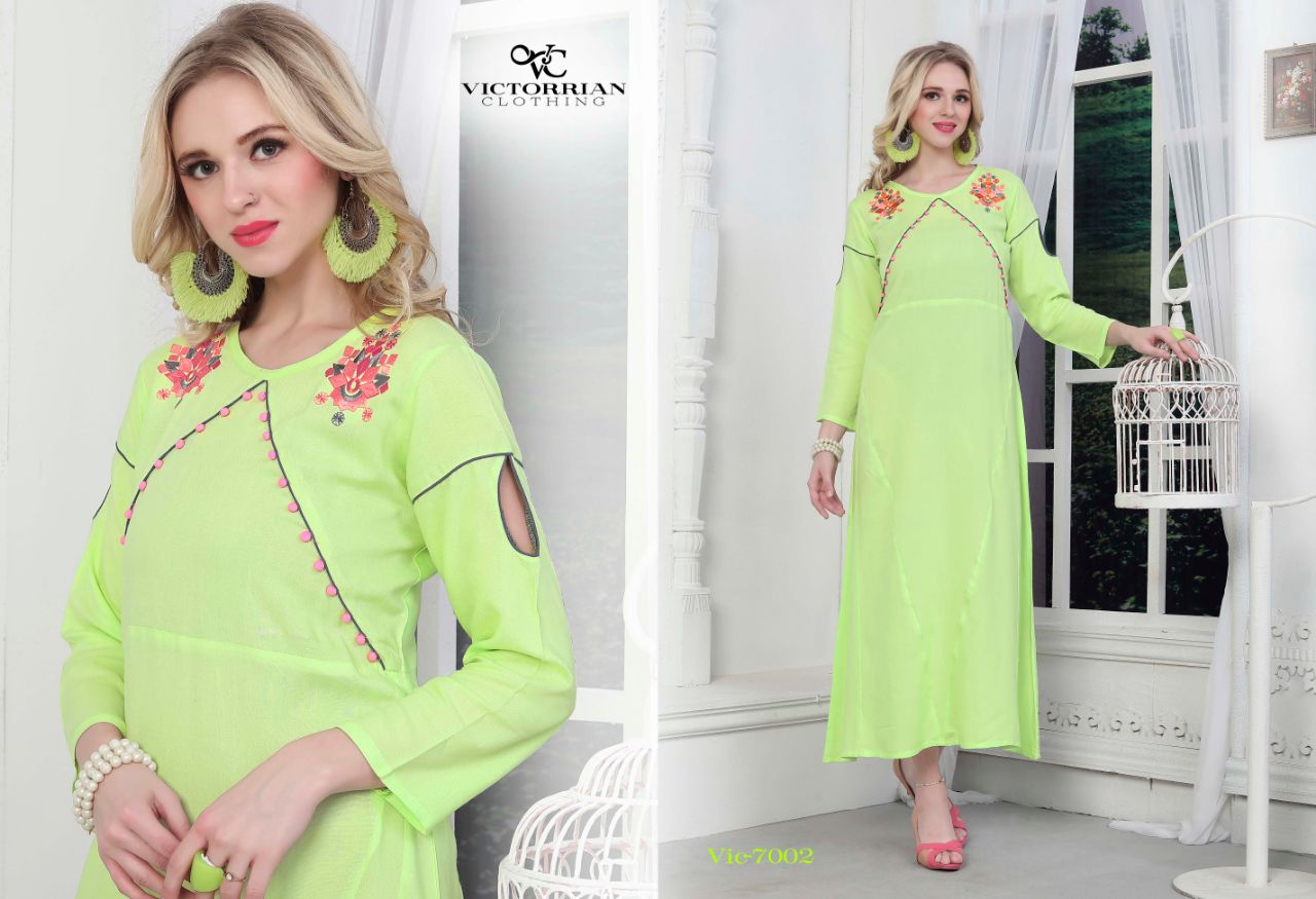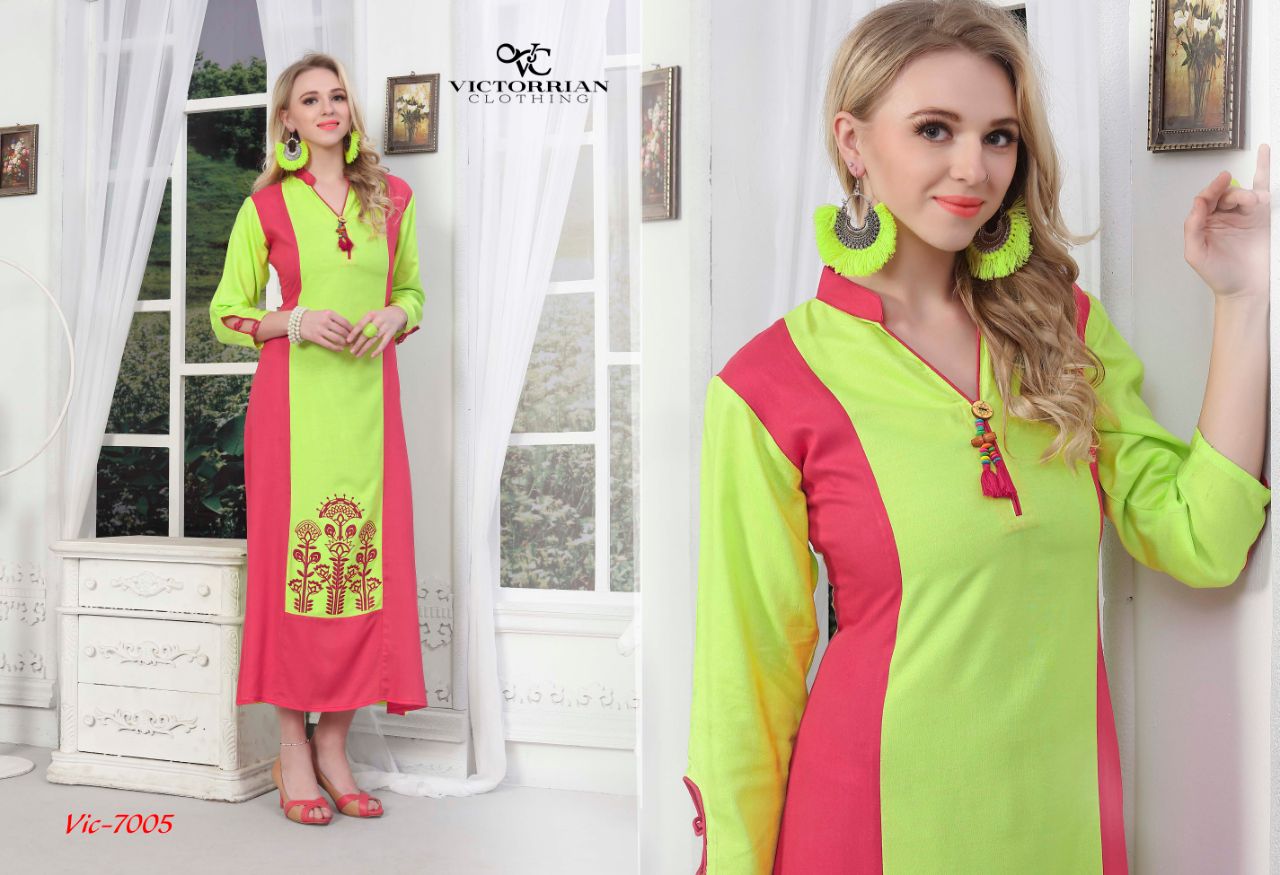 Buy Online Victoria Wings Vol 6 7001 To 7006 Series Fancy Reyon Kurti 6 Pcs of Full Catalogue at Wholesale Price. Looking for Victoria Wings Vol 6 7001 To 7006 Series Fancy Reyon Kurti Full Catalouge at Best Price? Buy Now Victoria Wings Vol 6 7001 To 7006 Series Fancy Reyon Kurti at Wholesale Rate of Rs 3300 with Total 6 Pcs from authroized dealer and supplier of Victoria Brand. Cost of Each piece is just only Rs 550 which is very low and affordable price to resale the product in your retail store ,This is Surat based Wholesale Supplier & Dealer of Victoria Brand. Click on Brand name to Know more about Victoria Brand's products.Call or Whatsapp on 9898838984 for booking or enquiry