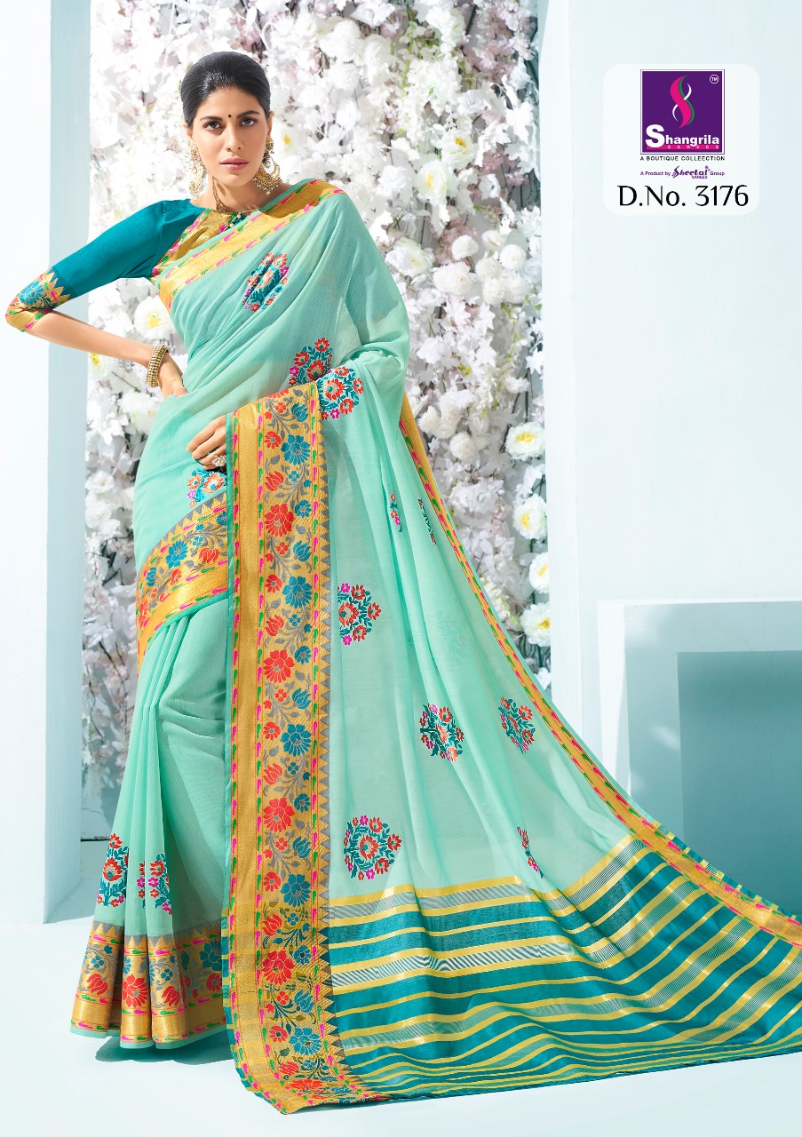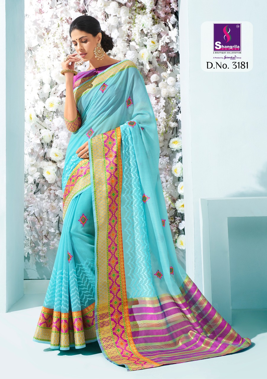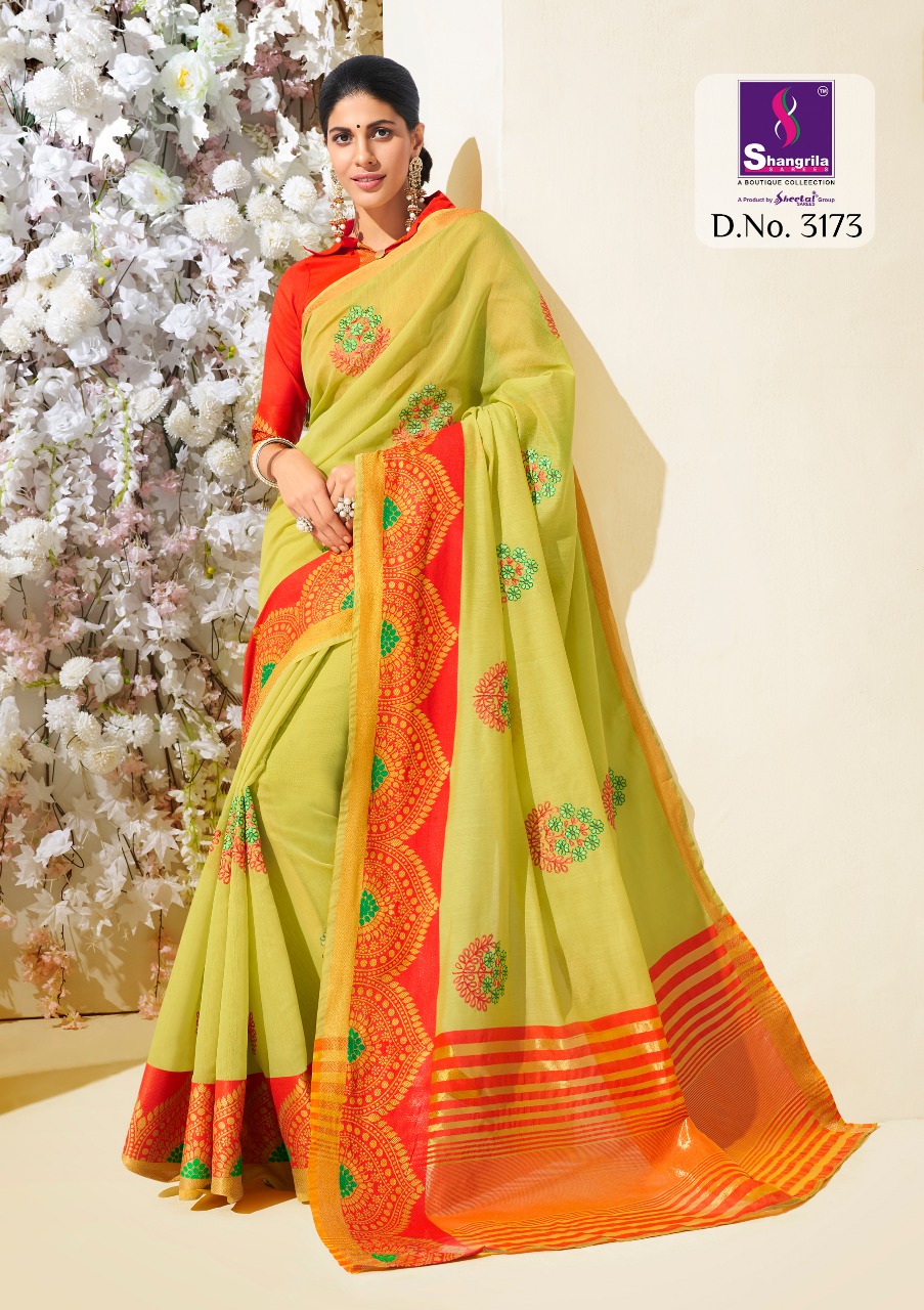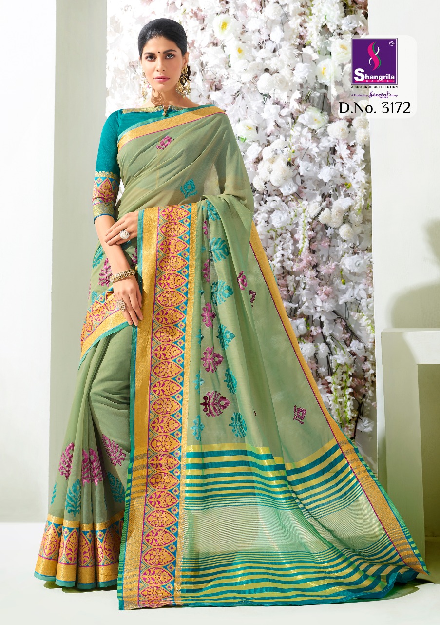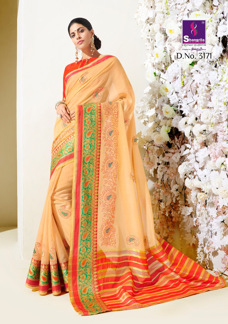 Buy Online Vidhya Cotton By Shangrila 3171 Series Rech Weaving Silk Saree Catlog Wholesale Dealer And Supplier Surat 12 Pcs of Full Catalogue at Wholesale Price. Looking for Vidhya Cotton By Shangrila 3171 Series Rech Weaving Silk Saree Catlog Wholesale Dealer And Supplier Surat Full Catalouge at Best Price? Buy Now Vidhya Cotton By Shangrila 3171 Series Rech Weaving Silk Saree Catlog Wholesale Dealer And Supplier Surat at Wholesale Rate of Rs 9120 with Total 12 Pcs from authroized dealer and supplier of SHANGRILA Brand. Cost of Each piece is just only Rs 760 which is very low and affordable price to resale the product in your retail store ,This is Surat based Wholesale Supplier & Dealer of SHANGRILA Brand. Click on Brand name to Know more about SHANGRILA Brand's products.Call or Whatsapp on 9898838984 for booking or enquiry