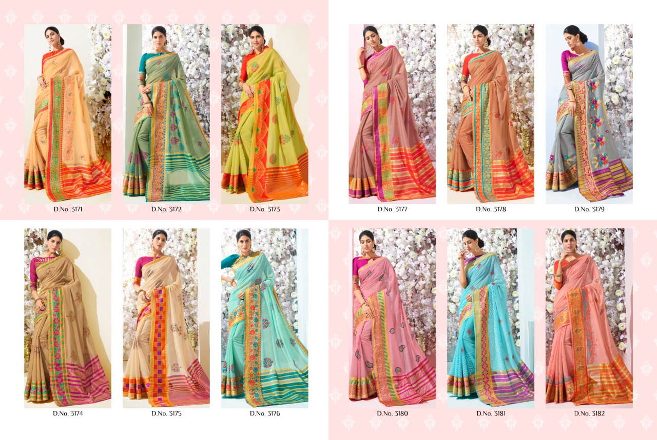 Vidhya Cotton By Shangrila 3171 Series Rech Weaving Silk Saree Catlog Wholesale Dealer And Supplier Surat
