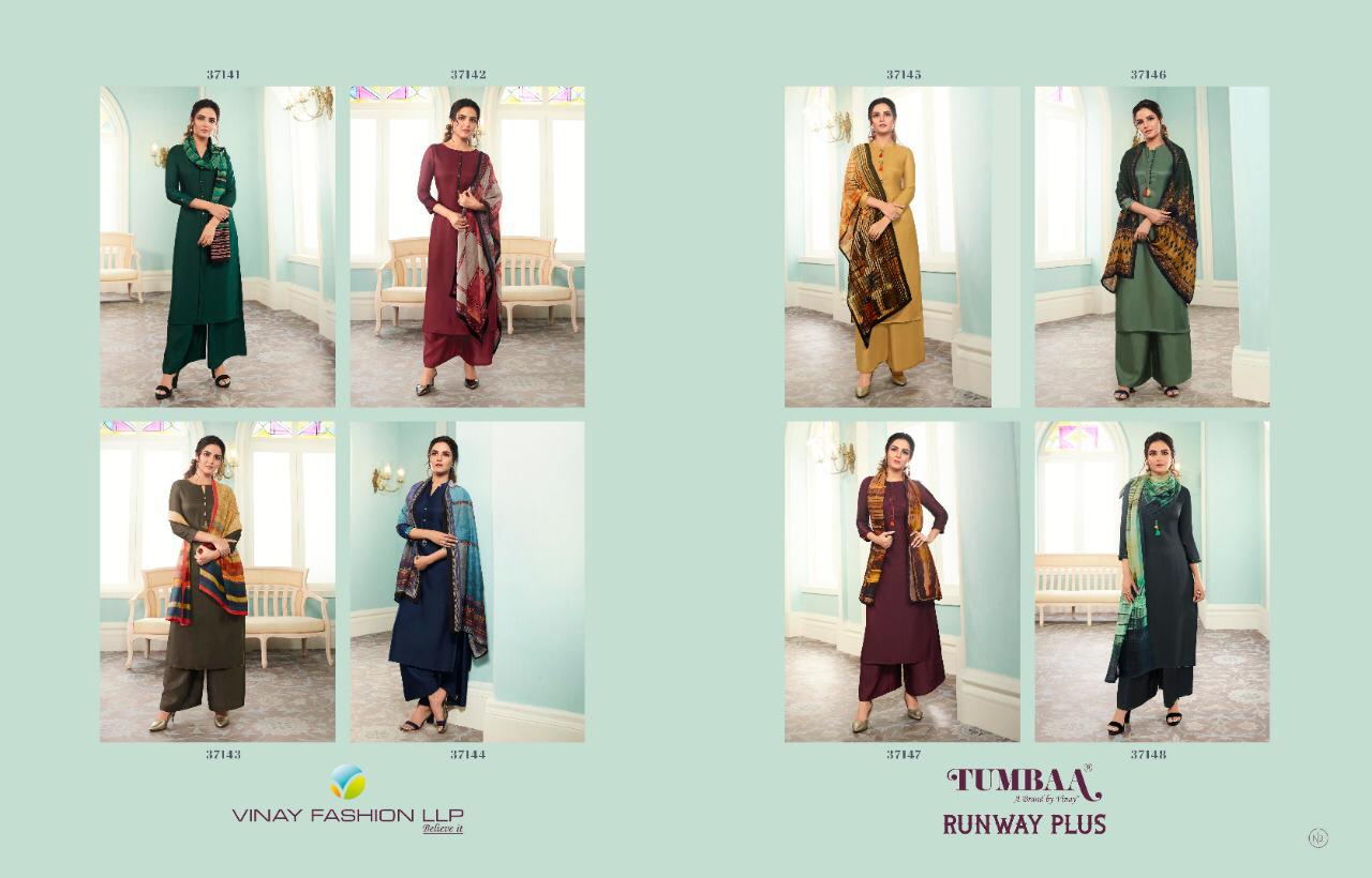 Vinay Tumbaa Runway Plus Series 37141 To 37148 Kurtis With Stole And Plazzo Wholesale Supplier Surat