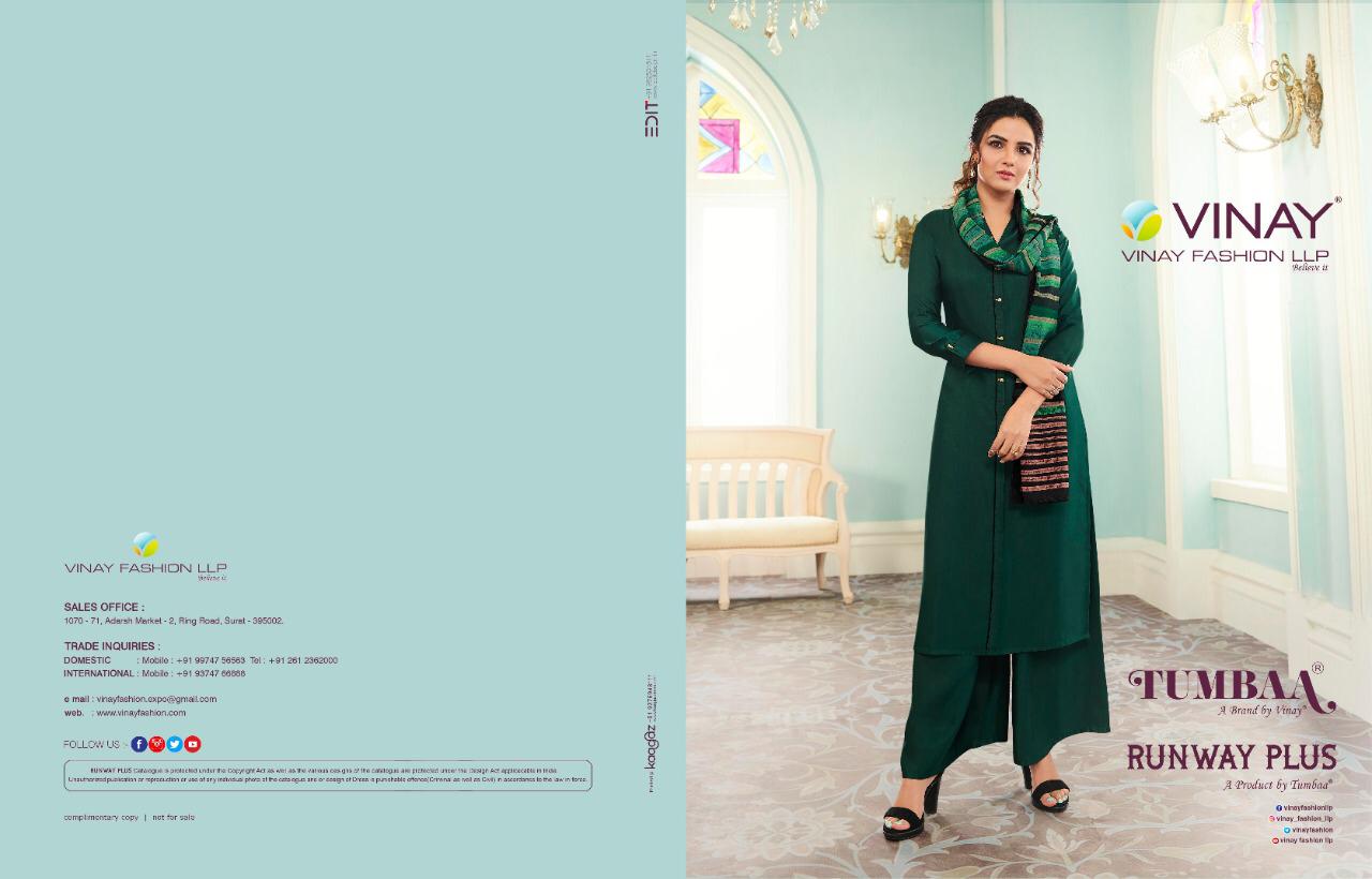 Buy Online Vinay Tumbaa Runway Plus Series 37141 To 37148 Kurtis With Stole And Plazzo Wholesale Supplier Surat 8 Pcs of Full Catalogue at Wholesale Price. Looking for Vinay Tumbaa Runway Plus Series 37141 To 37148 Kurtis With Stole And Plazzo Wholesale Supplier Surat Full Catalouge at Best Price? Buy Now Vinay Tumbaa Runway Plus Series 37141 To 37148 Kurtis With Stole And Plazzo Wholesale Supplier Surat at Wholesale Rate of Rs 6720 with Total 8 Pcs from authroized dealer and supplier of VINAY Brand. Cost of Each piece is just only Rs 840 which is very low and affordable price to resale the product in your retail store ,This is Surat based Wholesale Supplier & Dealer of VINAY Brand. Click on Brand name to Know more about VINAY Brand's products.Call or Whatsapp on 9898838984 for booking or enquiry