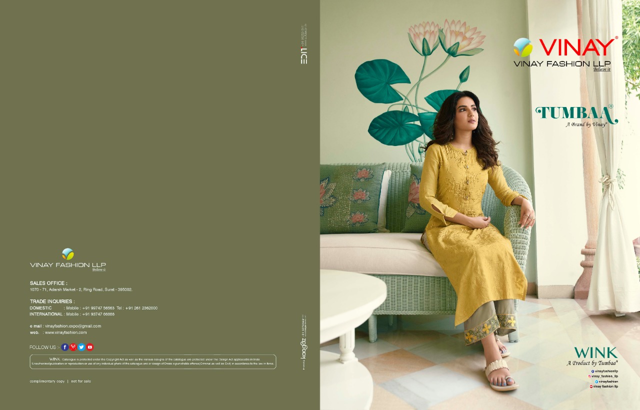 Buy Online Vinay Tumbaa Wink Series 37231 To 37238 Kurtis With Palazzo Set Nd Single Wholesale Supplier Gujarat 8 Pcs of Full Catalogue at Wholesale Price. Looking for Vinay Tumbaa Wink Series 37231 To 37238 Kurtis With Palazzo Set Nd Single Wholesale Supplier Gujarat Full Catalouge at Best Price? Buy Now Vinay Tumbaa Wink Series 37231 To 37238 Kurtis With Palazzo Set Nd Single Wholesale Supplier Gujarat at Wholesale Rate of Rs 0 with Total 8 Pcs from authroized dealer and supplier of VINAY Brand. Cost of Each piece is just only Rs 0 which is very low and affordable price to resale the product in your retail store ,This is Surat based Wholesale Supplier & Dealer of VINAY Brand. Click on Brand name to Know more about VINAY Brand's products.Call or Whatsapp on 9898838984 for booking or enquiry