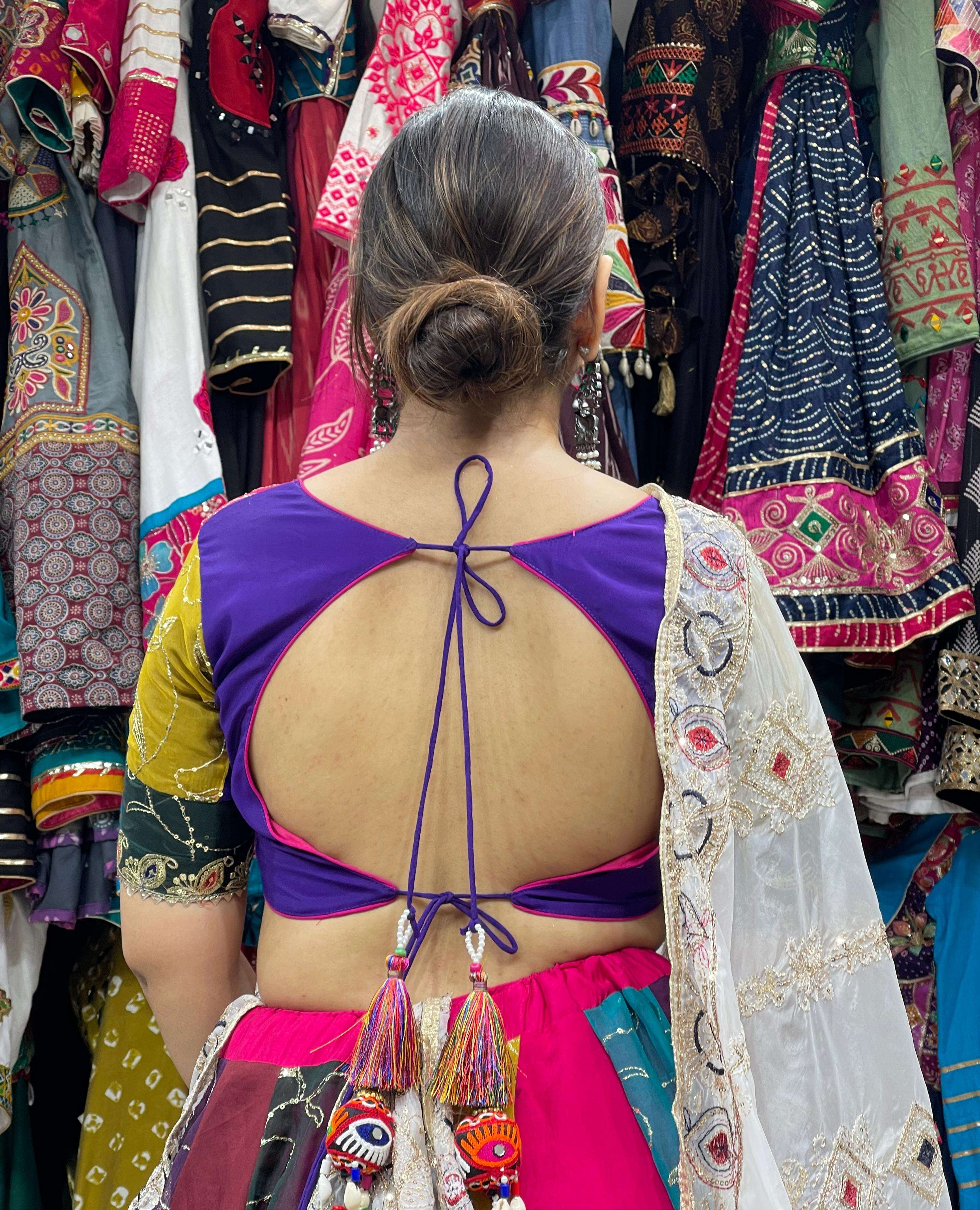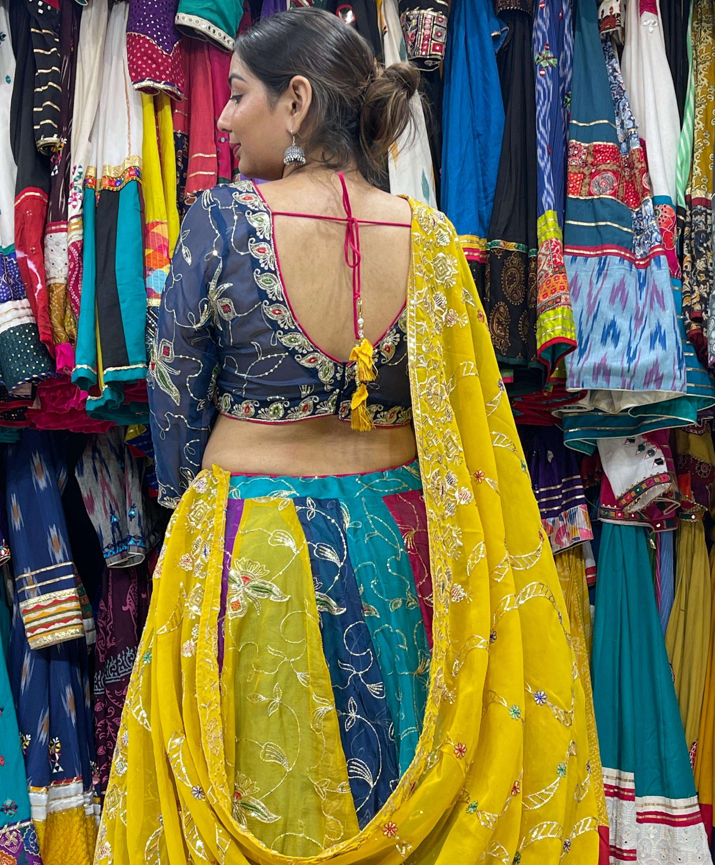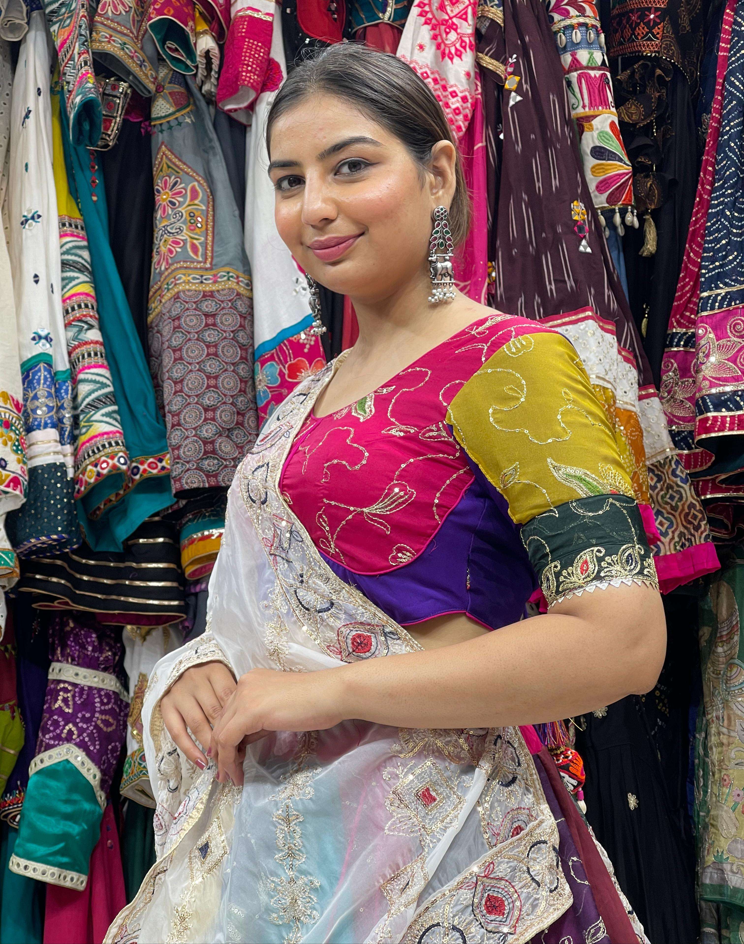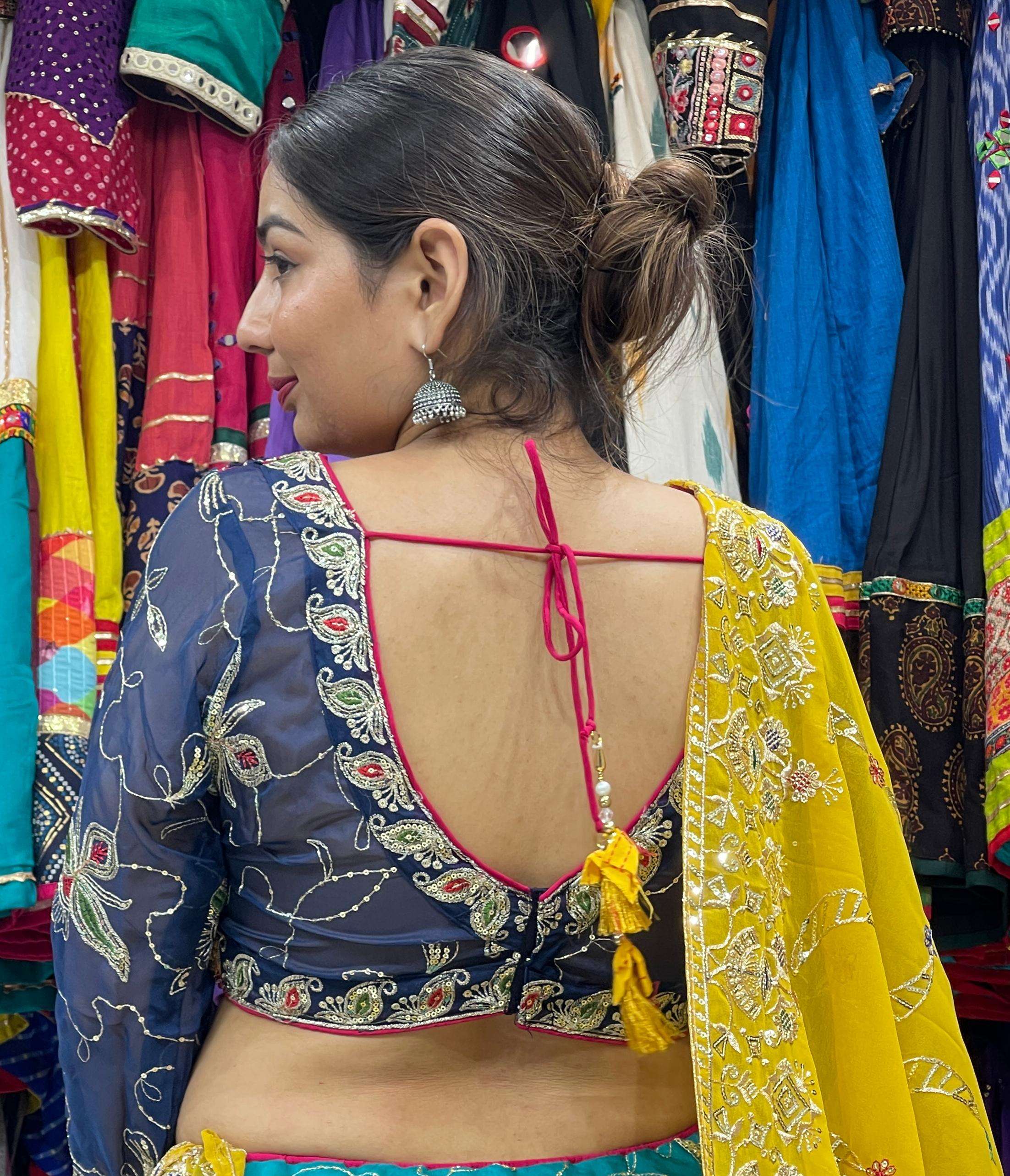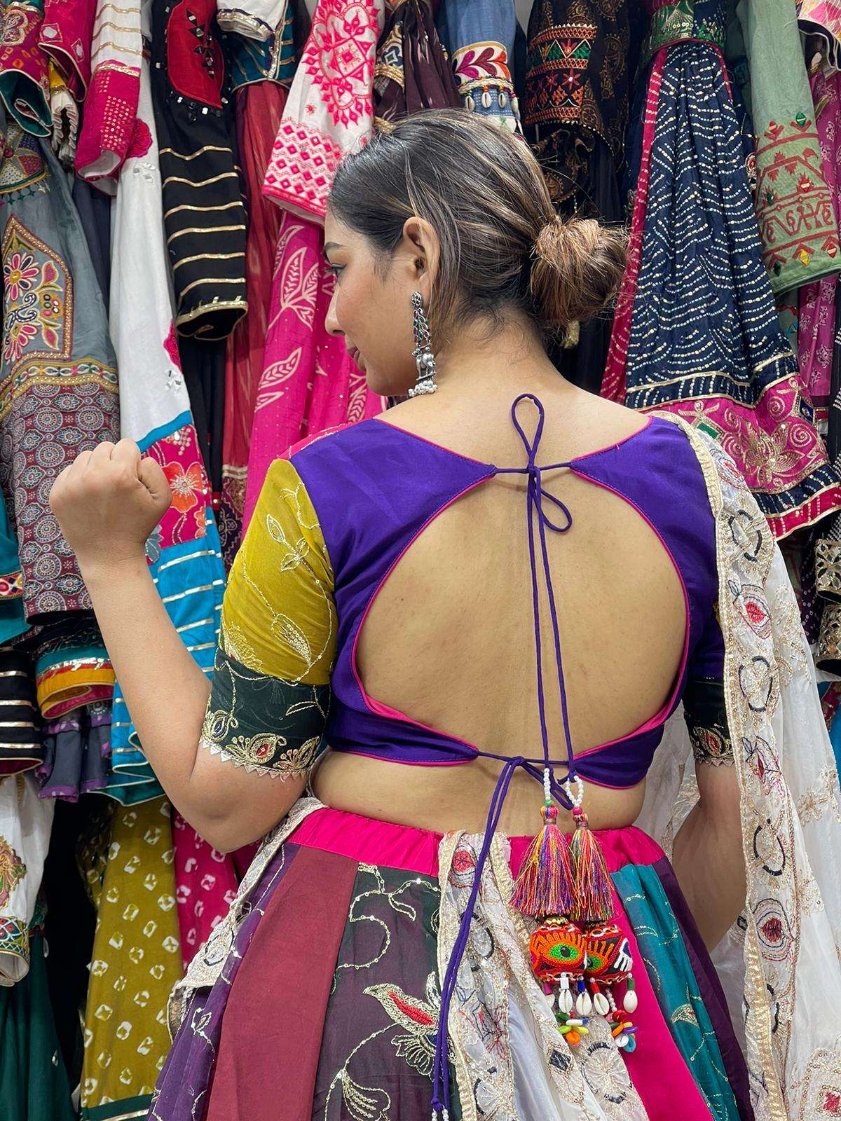 *Traditional Organza Silk patch work Designer Blouse In trend latest fast moving Heavy Organza silk Vintage print cut & Sew Vintage Classic Chaniya Choli*