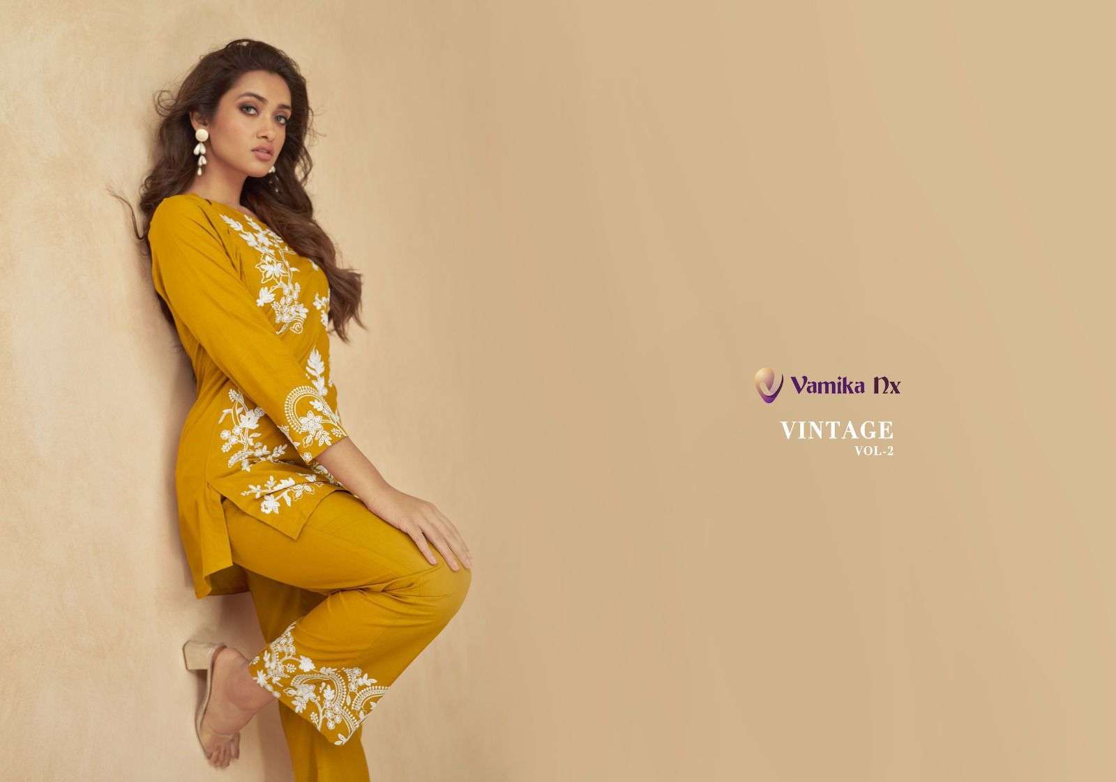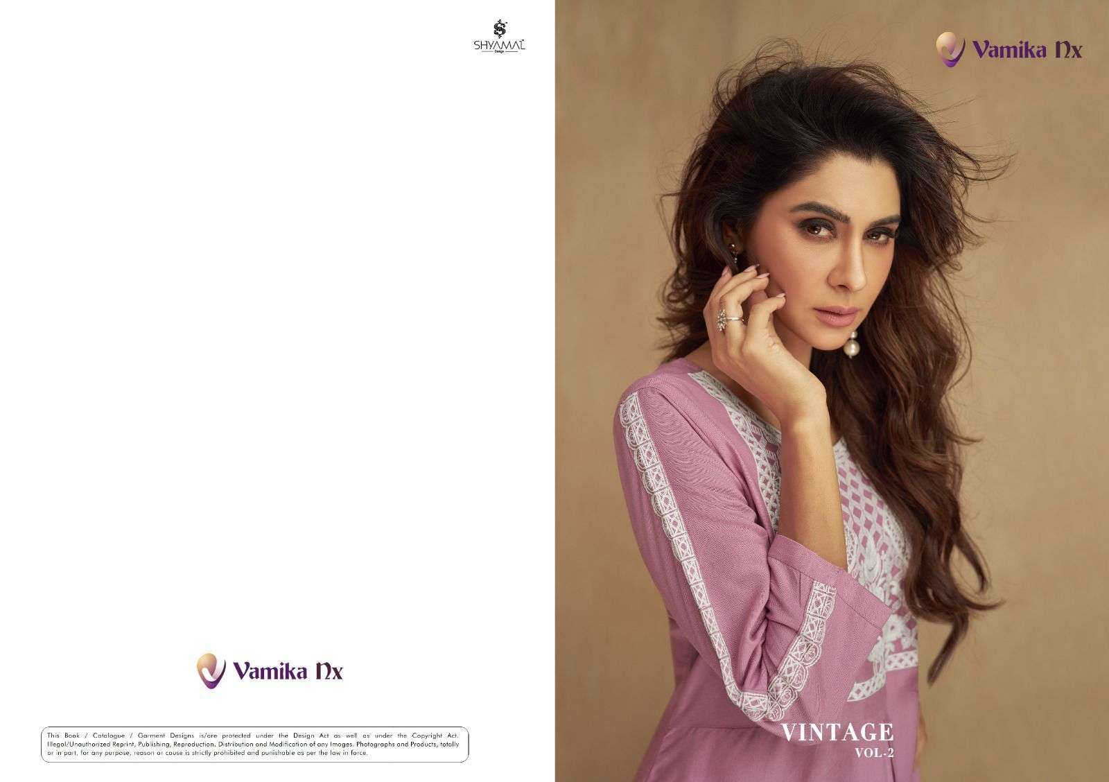 Buy Online Vintage Vol 2 by Vamika Nx Hevy REYON kurti collection manufacturer surat 6 Pcs of Full Catalogue at Wholesale Price. Looking for Vintage Vol 2 by Vamika Nx Hevy REYON kurti collection manufacturer surat Full Catalouge at Best Price? Buy Now Vintage Vol 2 by Vamika Nx Hevy REYON kurti collection manufacturer surat at Wholesale Rate of Rs 4794 with Total 6 Pcs from authroized dealer and supplier of VAMIKA NX Brand. Cost of Each piece is just only Rs 799 which is very low and affordable price to resale the product in your retail store ,This is Surat based Wholesale Supplier & Dealer of VAMIKA NX Brand. Click on Brand name to Know more about VAMIKA NX Brand's products.Call or Whatsapp on 9898838984 for booking or enquiry