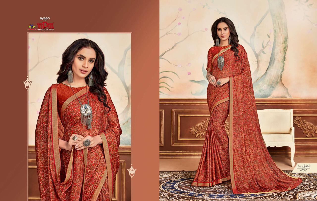 Brand - Vipul . Type - saree. Series - 42507 to 42518. Set & loose & singel . Single extra 100 Fabric-chiffon print with border. Rate- 681 per Pcs GST 5 Percent Extra. Delivery from tomorrow |