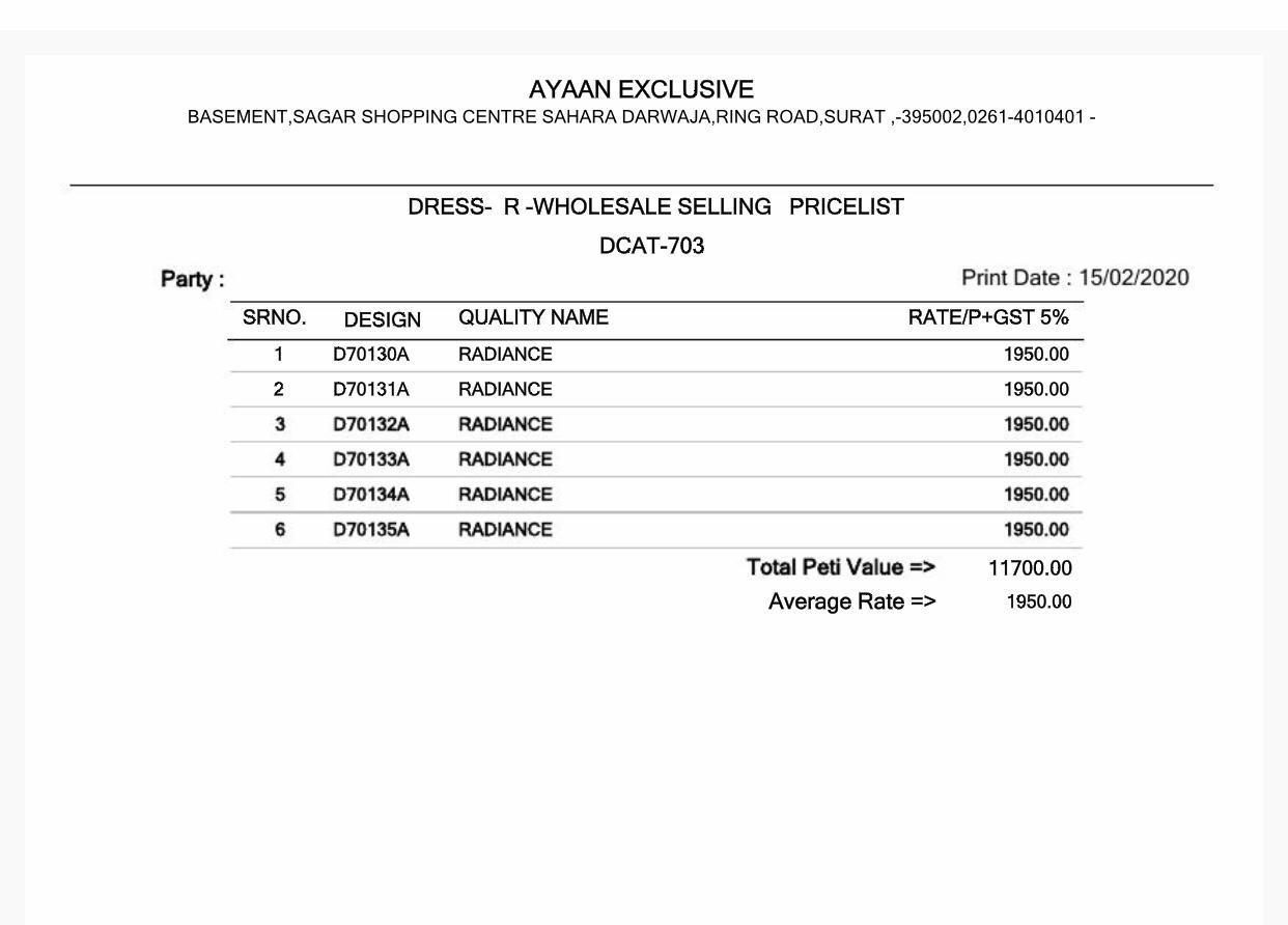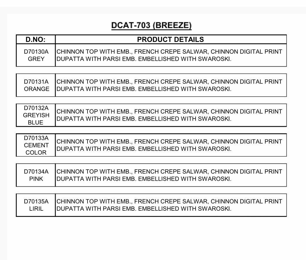 Buy Online Vipul Dcat 703 Breeze Designer Suit Wholesale Supplier And Dealer Surat 6 Pcs of Full Catalogue at Wholesale Price. Looking for Vipul Dcat 703 Breeze Designer Suit Wholesale Supplier And Dealer Surat Full Catalouge at Best Price? Buy Now Vipul Dcat 703 Breeze Designer Suit Wholesale Supplier And Dealer Surat at Wholesale Rate of Rs 11700 with Total 6 Pcs from authroized dealer and supplier of VIPUL Brand. Cost of Each piece is just only Rs 1950 which is very low and affordable price to resale the product in your retail store ,This is Surat based Wholesale Supplier & Dealer of VIPUL Brand. Click on Brand name to Know more about VIPUL Brand's products.Call or Whatsapp on 9898838984 for booking or enquiry