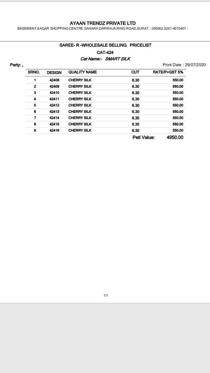 Buy Online Vipul Sarees Smart Silk Series 42408 Designer Party Wear Suits Wholesale Supplier Gujarat 9 Pcs of Full Catalogue at Wholesale Price. Looking for Vipul Sarees Smart Silk Series 42408 Designer Party Wear Suits Wholesale Supplier Gujarat Full Catalouge at Best Price? Buy Now Vipul Sarees Smart Silk Series 42408 Designer Party Wear Suits Wholesale Supplier Gujarat at Wholesale Rate of Rs 4950 with Total 9 Pcs from authroized dealer and supplier of VIPUL Brand. Cost of Each piece is just only Rs 550 which is very low and affordable price to resale the product in your retail store ,This is Surat based Wholesale Supplier & Dealer of VIPUL Brand. Click on Brand name to Know more about VIPUL Brand's products.Call or Whatsapp on 9898838984 for booking or enquiry