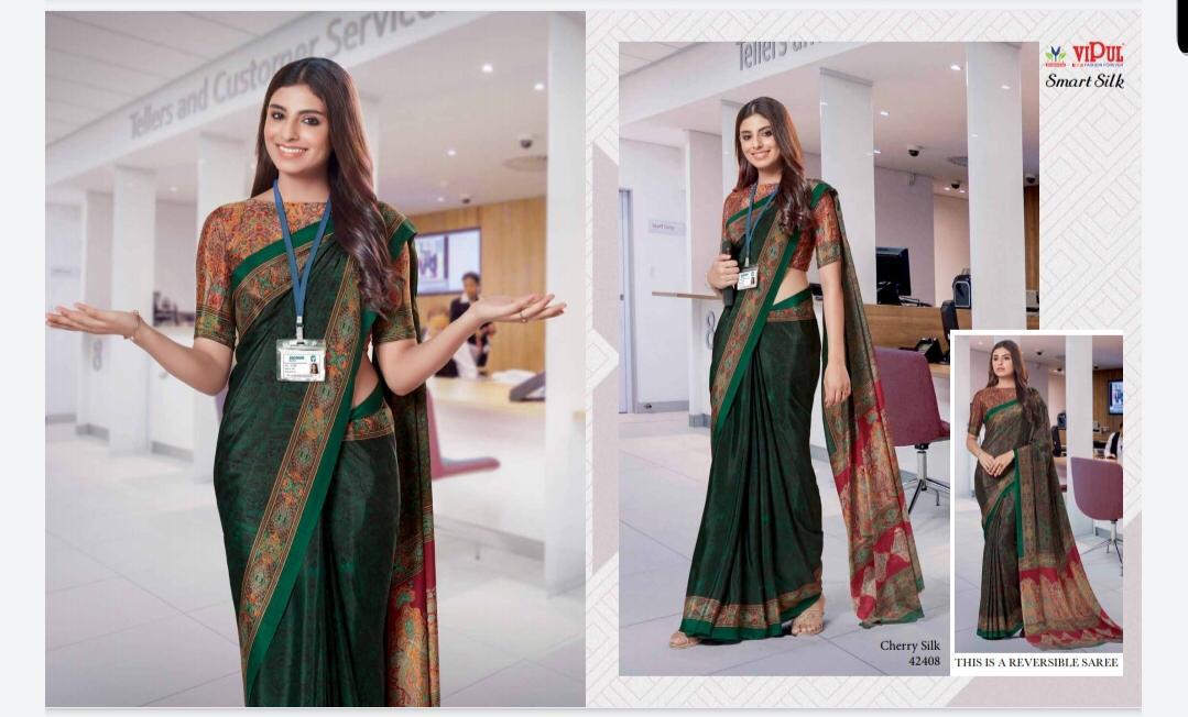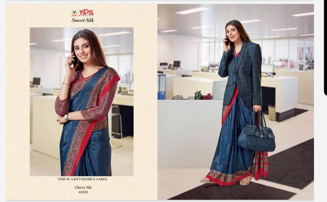 *VIPUL SAREES PRESENTING A NEW CATLOG SMART SILK* *EXCLUSIVE BRAND COLLECTIONS IN FANCY SAREES* *Presenting The First Of it's Kind Corporate Collection With A Modern Indian Approach to High Flying Fashion.* *Most Of Which Are REVERSIBLE Into Dual Looks,* *Travel Friendly & Fashion Forward* *ALSO* *For Unbeatable UNIFORM COLLECTION.* *FABRIC-CRAPE SILK * *RATE-550* *9 DESIGNS IN ONE SET* * Set & loose & Singel * Single extra 100 *5%GST APPLICABLE* *MULTIPLES AVAILABLE* |