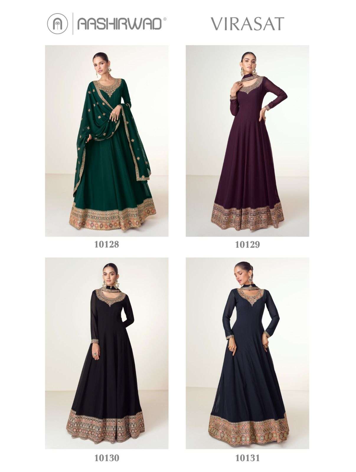Buy Online VIRASAT by AASHIRWAD gown CREATION manufacturer surat 4 Pcs of Full Catalogue at Wholesale Price. Looking for VIRASAT by AASHIRWAD gown CREATION manufacturer surat Full Catalouge at Best Price? Buy Now VIRASAT by AASHIRWAD gown CREATION manufacturer surat at Wholesale Rate of Rs 11180 with Total 4 Pcs from authroized dealer and supplier of AASHIRWAD Brand. Cost of Each piece is just only Rs 2795 which is very low and affordable price to resale the product in your retail store ,This is Surat based Wholesale Supplier & Dealer of AASHIRWAD Brand. Click on Brand name to Know more about AASHIRWAD Brand's products.Call or Whatsapp on 9898838984 for booking or enquiry