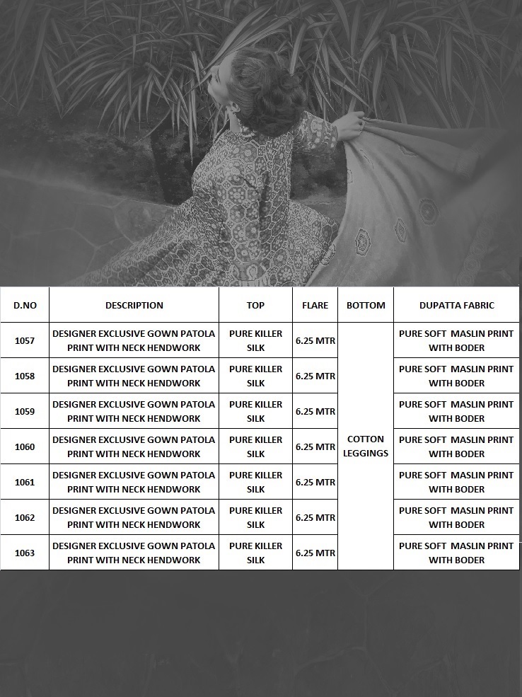 Buy Online Virasat Mayuri Series 1057 Designer Party Wear Gowns Wholesale Supplier Gujarat 7 Pcs of Full Catalogue at Wholesale Price. Looking for Virasat Mayuri Series 1057 Designer Party Wear Gowns Wholesale Supplier Gujarat Full Catalouge at Best Price? Buy Now Virasat Mayuri Series 1057 Designer Party Wear Gowns Wholesale Supplier Gujarat at Wholesale Rate of Rs 17675 with Total 7 Pcs from authroized dealer and supplier of BRAND'S Brand. Cost of Each piece is just only Rs 2525 which is very low and affordable price to resale the product in your retail store ,This is Surat based Wholesale Supplier & Dealer of BRAND'S Brand. Click on Brand name to Know more about BRAND'S Brand's products.Call or Whatsapp on 9898838984 for booking or enquiry