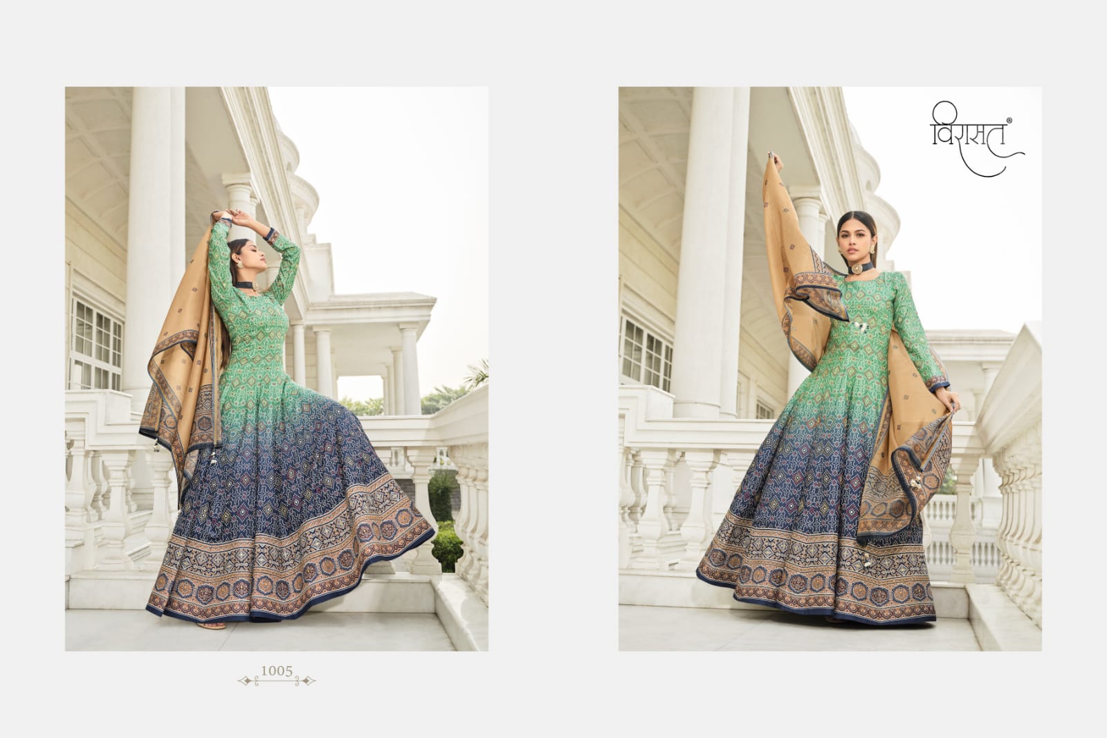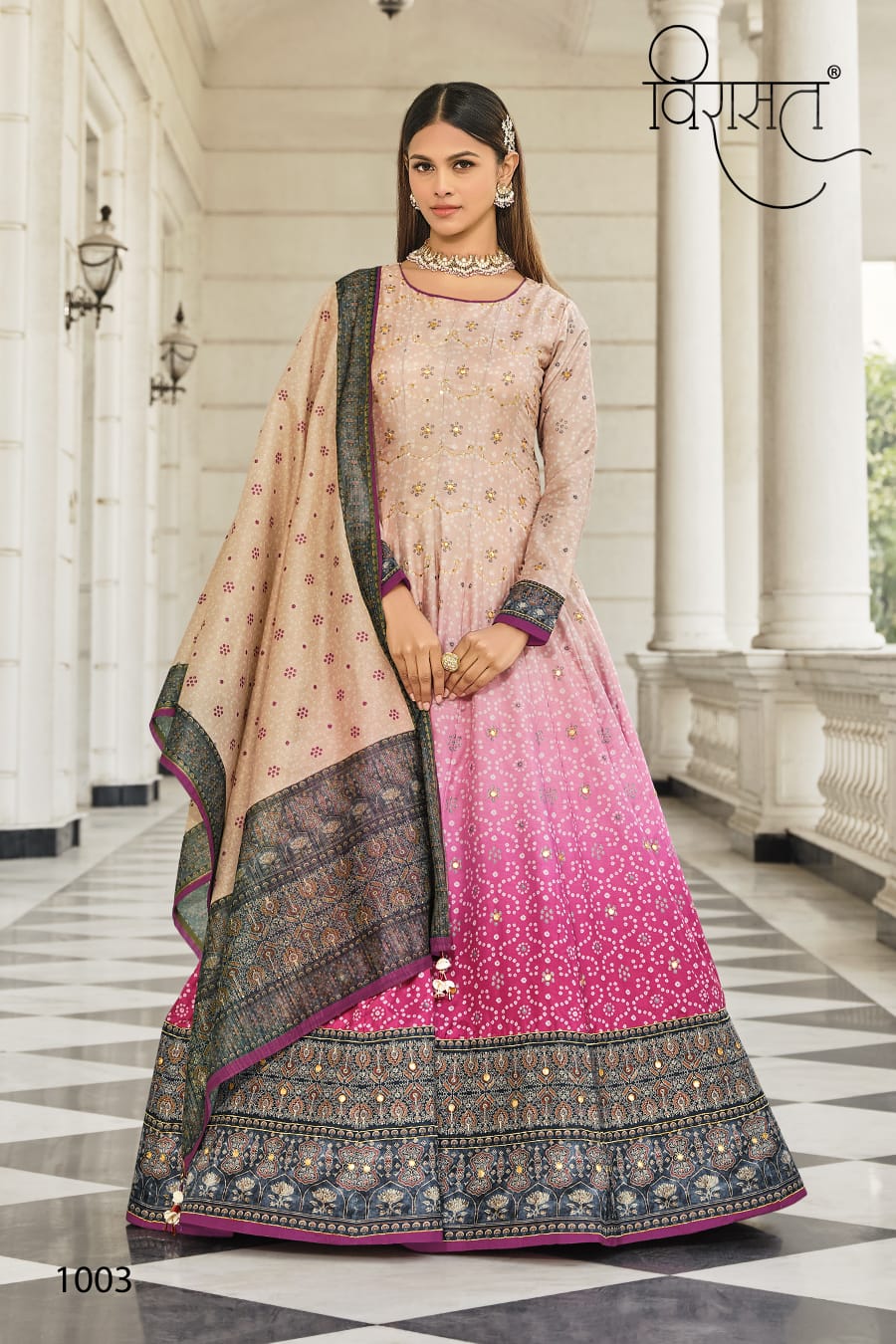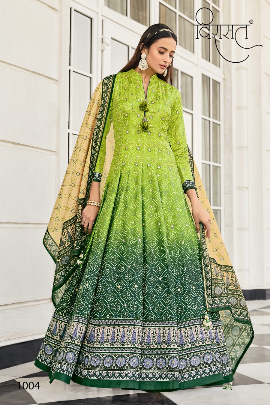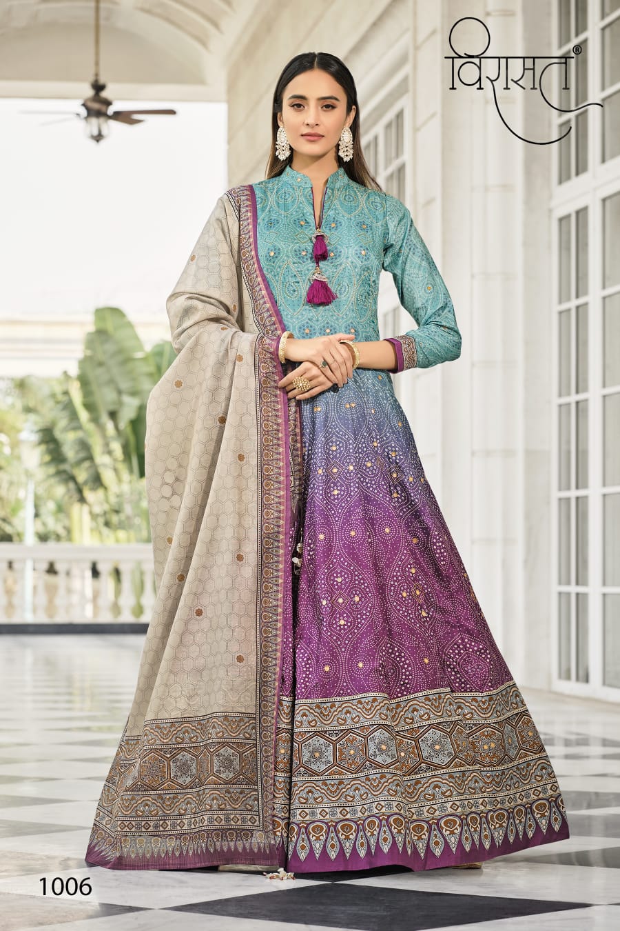 Buy Online Virasat New Launch Morepinch Designer Gowns Collection Manufacturer Surat 6 Pcs of Full Catalogue at Wholesale Price. Looking for Virasat New Launch Morepinch Designer Gowns Collection Manufacturer Surat Full Catalouge at Best Price? Buy Now Virasat New Launch Morepinch Designer Gowns Collection Manufacturer Surat at Wholesale Rate of Rs 20970 with Total 6 Pcs from authroized dealer and supplier of VIRASAT Brand. Cost of Each piece is just only Rs 3495 which is very low and affordable price to resale the product in your retail store ,This is Surat based Wholesale Supplier & Dealer of VIRASAT Brand. Click on Brand name to Know more about VIRASAT Brand's products.Call or Whatsapp on 9898838984 for booking or enquiry