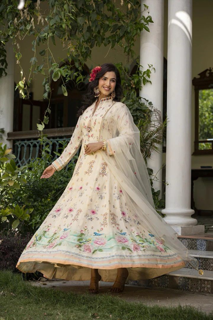 ?We have launch our new series VIRASAT For upcoming seasons? VIRASAT VOL BELA DESIGNER GOWN EXCLUSIVE COLLRCTION GOWN :- PURE DOLA JAQARD BUTTI WORK :- DESIGNER FLOWER PRINT LONG KALI AND DESIGNER BUTTN LATKAN INNER :- FULL INNER IS ALL DESIGNS WITH CANCAN NET DUPATTA :- SOFT NET WITH DESIGNER LACE AND LATKAN LENGHT :- MAX UP TO 58 FLAIR :- 4.5 METER* SIZE :- L(40), XL(42), XXL(44) TYPE :- STTICHED WEIGHT :- 2 KG TOTAL 4 DESIGNS. -:Rate:- 31001- 3695/- 31002- 3695/- 31003 - 3695/- 31004 - 3695/- Gst ship extra SINGLE available READY TO SHIP LIMITED STOCK 100+ SINGLE |