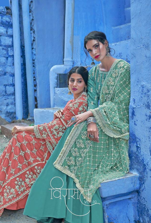 Virasat Vol 10 Series 1043 To 1046 Designer Party Wear Gowns Set Nd Single Wholesale Supplier Gujarat