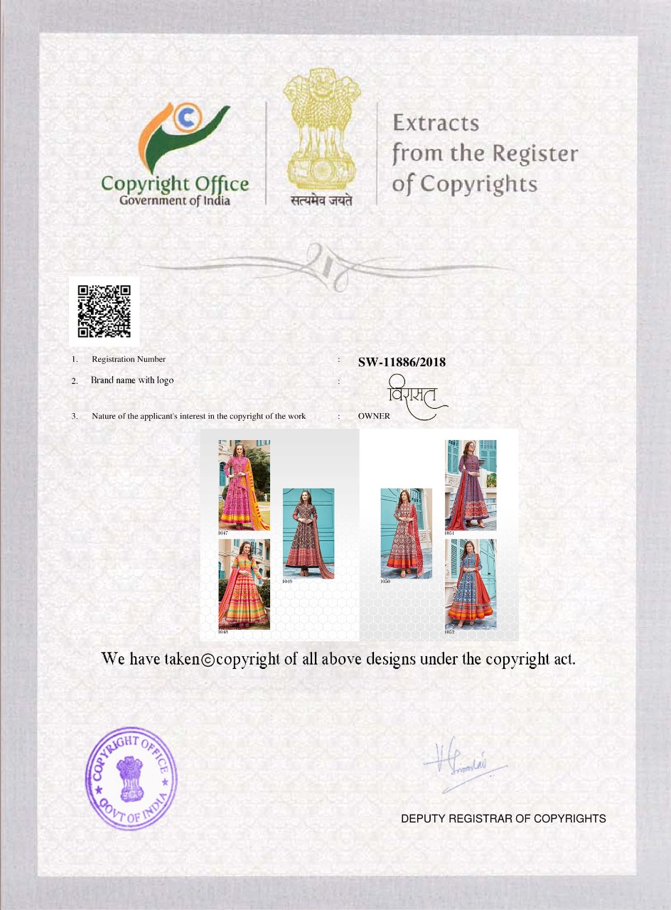 Buy Online Virasat Vol 11 Series 1047 To 1052 Designer Suits Set And Single Wholesale Supplier Gujarat 0 Pcs of Full Catalogue at Wholesale Price. Looking for Virasat Vol 11 Series 1047 To 1052 Designer Suits Set And Single Wholesale Supplier Gujarat Full Catalouge at Best Price? Buy Now Virasat Vol 11 Series 1047 To 1052 Designer Suits Set And Single Wholesale Supplier Gujarat at Wholesale Rate of Rs 0 with Total 0 Pcs from authroized dealer and supplier of Brand. Cost of Each piece is just only Rs 0 which is very low and affordable price to resale the product in your retail store ,This is Surat based Wholesale Supplier & Dealer of Brand. Click on Brand name to Know more about Brand's products.Call or Whatsapp on 9898838984 for booking or enquiry