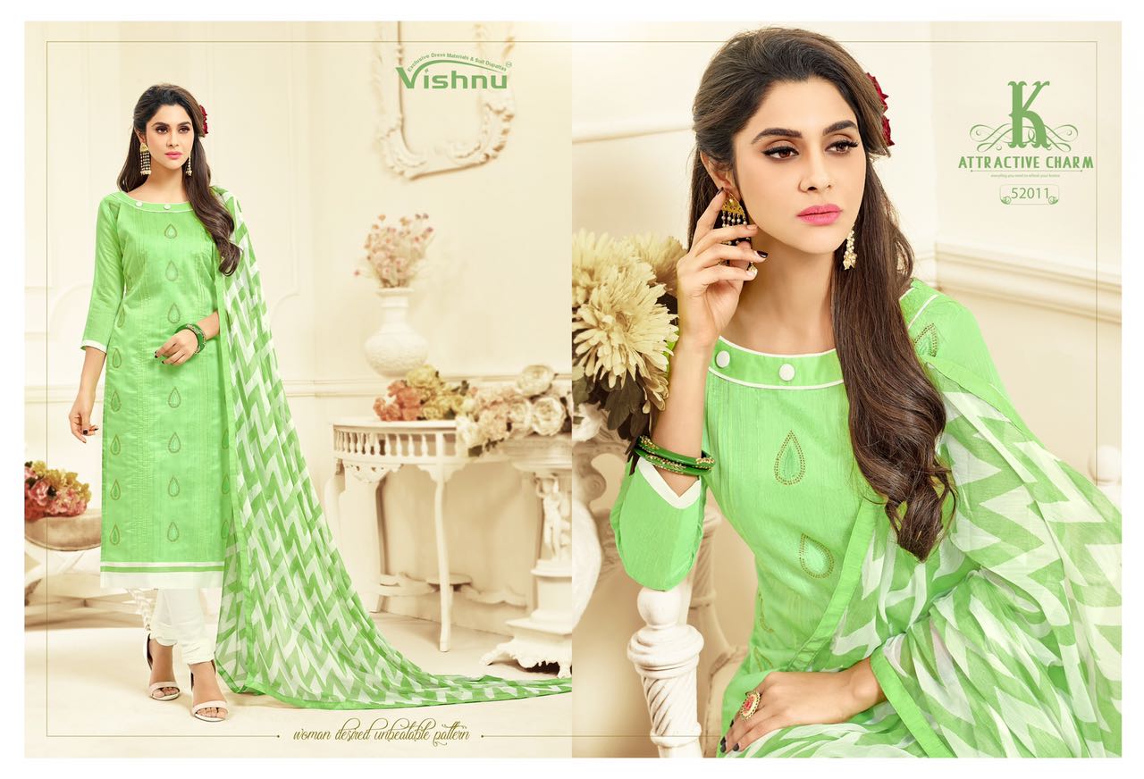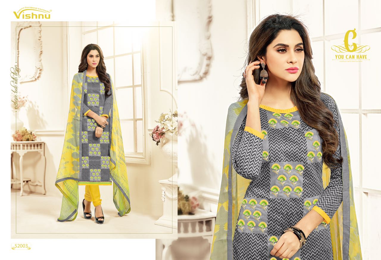 Buy Online Vishnu Impex Dermy Cool Vol 11 52001 Series Chanderi Suits 12 Pcs of Full Catalogue at Wholesale Price. Looking for Vishnu Impex Dermy Cool Vol 11 52001 Series Chanderi Suits Full Catalouge at Best Price? Buy Now Vishnu Impex Dermy Cool Vol 11 52001 Series Chanderi Suits at Wholesale Rate of Rs 5400 with Total 12 Pcs from authroized dealer and supplier of VISHNU IMPEX Brand. Cost of Each piece is just only Rs 450 which is very low and affordable price to resale the product in your retail store ,This is Surat based Wholesale Supplier & Dealer of VISHNU IMPEX Brand. Click on Brand name to Know more about VISHNU IMPEX Brand's products.Call or Whatsapp on 9898838984 for booking or enquiry
